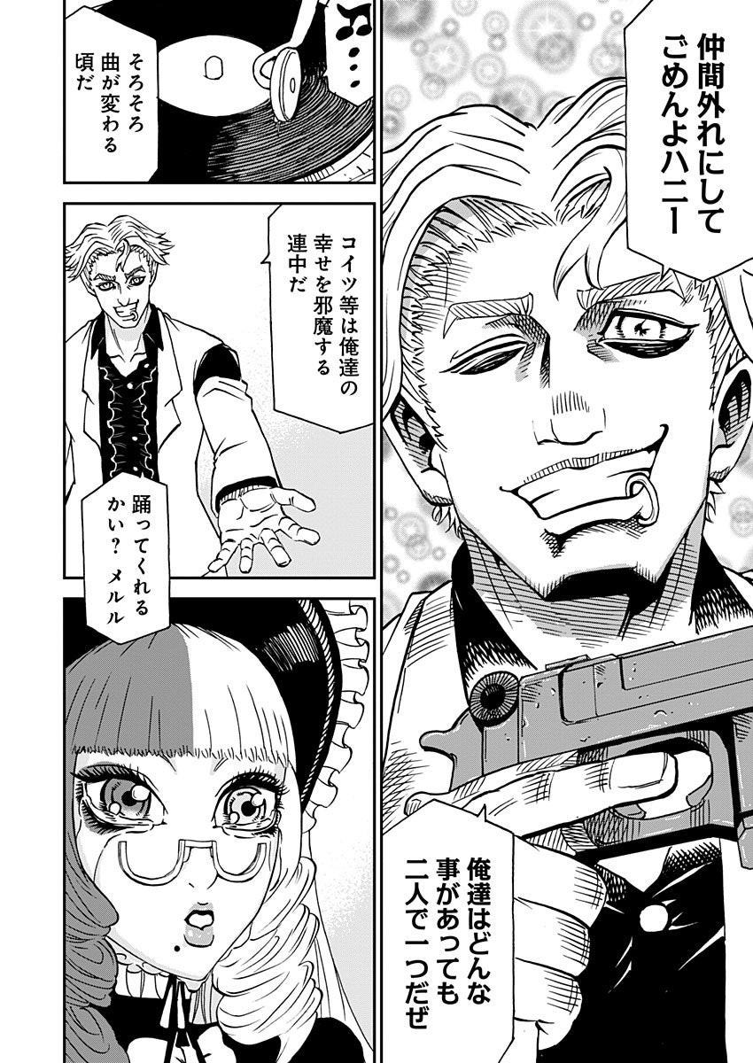殺し屋バラック・ゲーラとオッドアイの令嬢メルル・キングストーンは、ミッシンシティ全土の恋愛成就スポットを巡り、記念写真を撮る旅を続けている。ギャング組織に狙われ、警察に追われる二人の恋路は、血に塗られたロマンティック・デスロード!!! 狂暴な愛が今日も血の華を咲かせる!!!