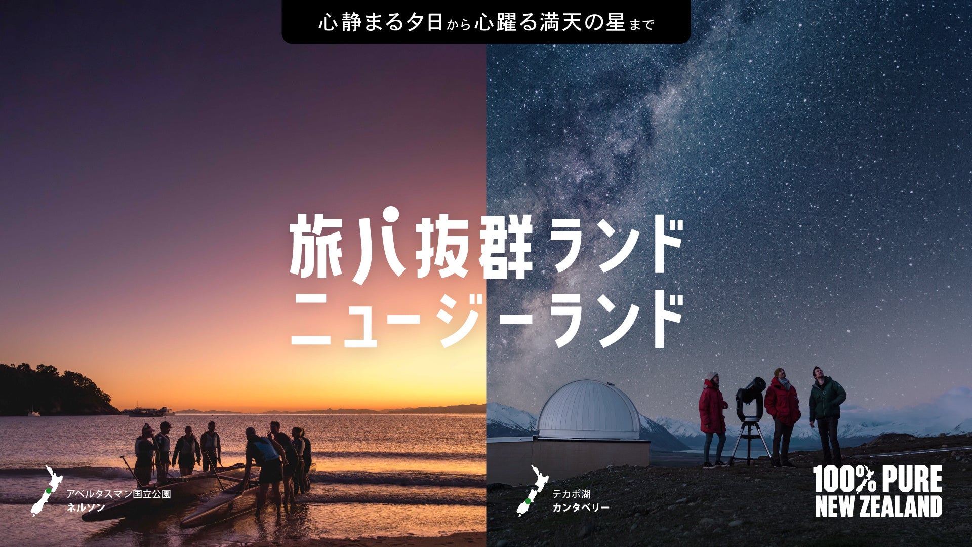 心静まる夕日から心躍る満点の星空、そして古くから伝わる陸・海の大自然や刺激的な体験もできる大都市まで。ニュージーランドなら、一度の旅で、豊かな時間と感動する体験を、何度でも味わうことが出来ます。そんなニュージーランドの魅力がぎゅっと詰まった特別なキャンペーンイメージとスペシャルビデオを公開します。