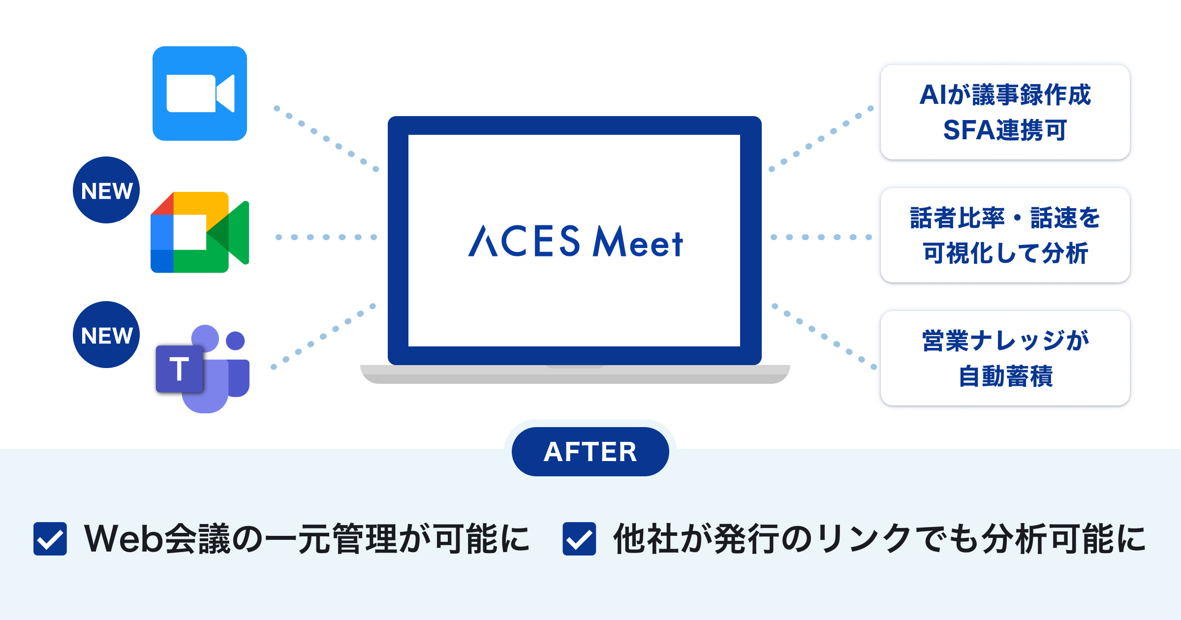 営業AIツールACES Meet がGoogle MeetおよびMicrosoft Teamsとの連携を開始