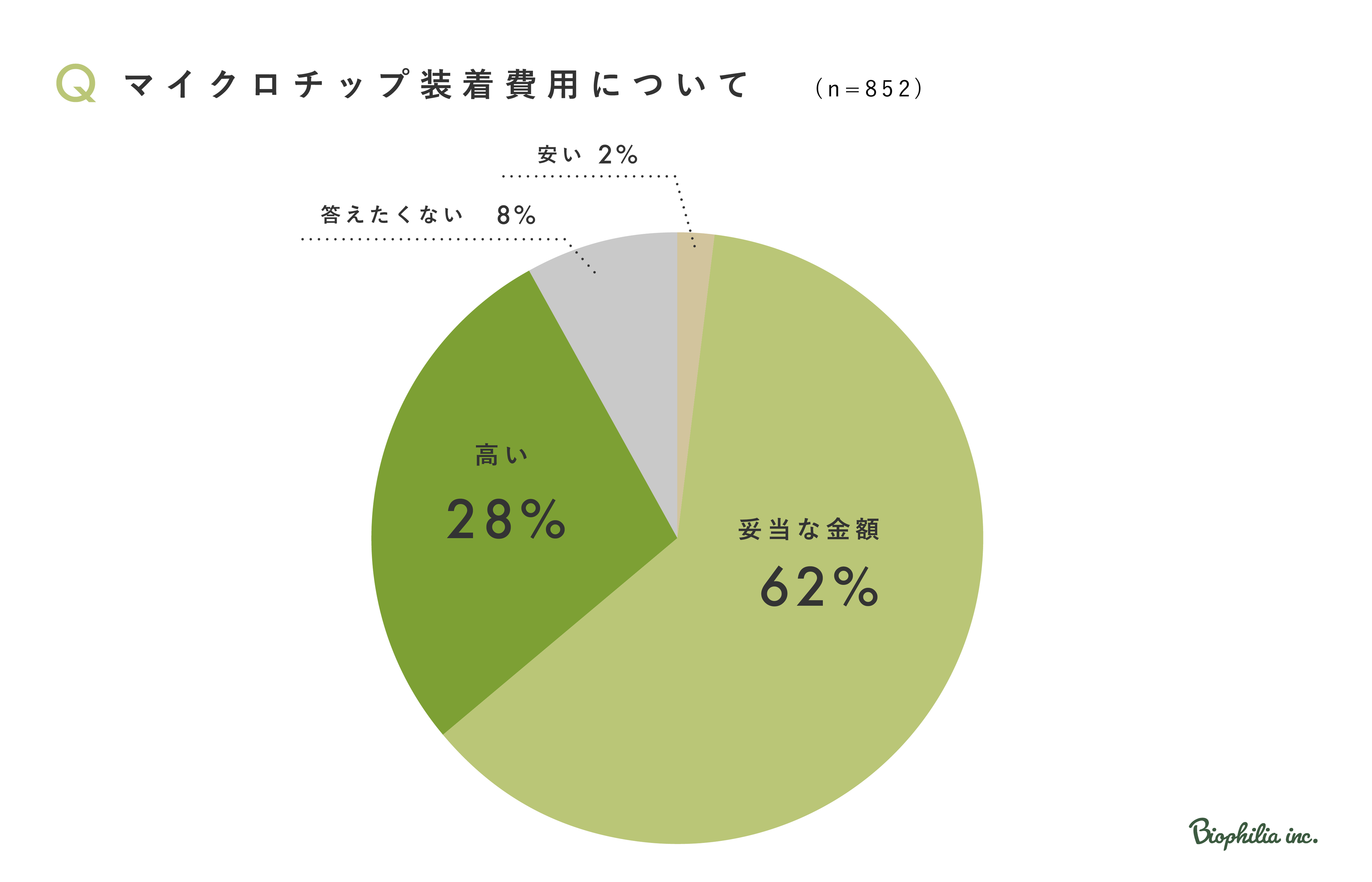 2022年6月1日から、ペットショップやブリーダー業者などで販売される犬猫に関して、個体認証マイクロチップを装着することが法律で義務化されます。株式会社バイオフィリアでは、犬の飼い主を対象にマイクロチップ装着に対する飼い主(n=852)の全国意識調査を行うとともに、動物保護団体にマイクロチップ義務化に関する意見を集めました。