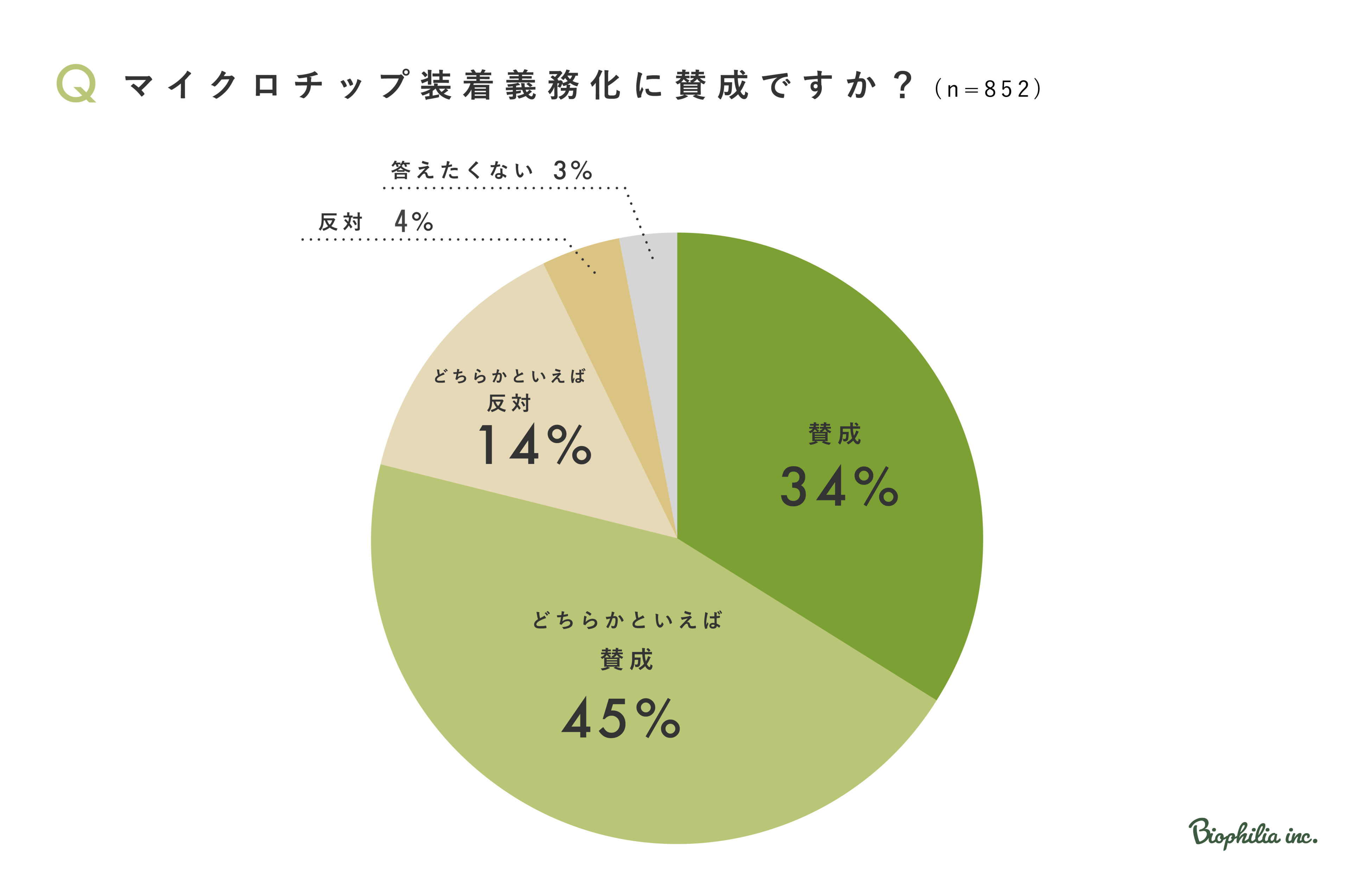 - マイクロチップ装着義務化に賛成の飼い主は79%、反対は18%