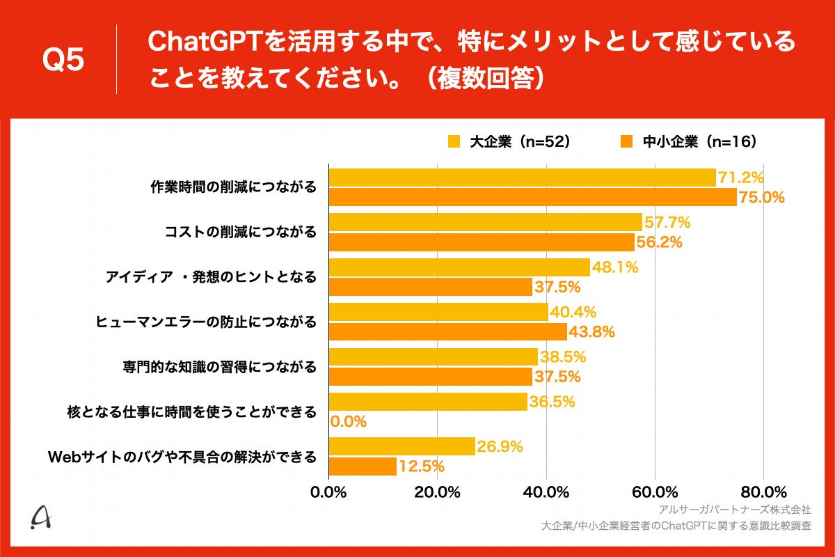 出典:アルサーガパートナーズ株式会社 「大企業/中小企業経営者のChatGPTに関する意識比較調査」