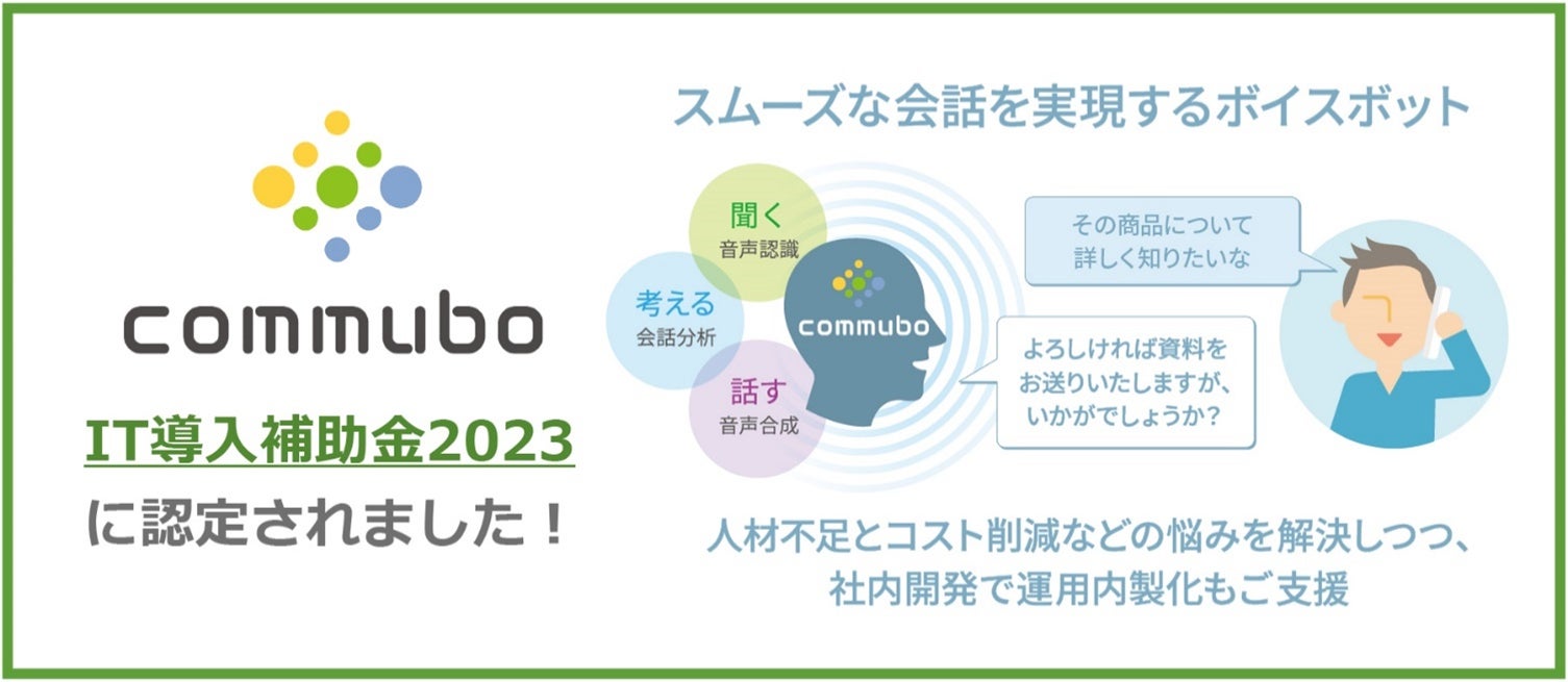 この認定により、ボイスボット「commubo(コミュボ)」 (https://commubo.com/)が、「IT導入補助金2023」のITツールとして登録されました。