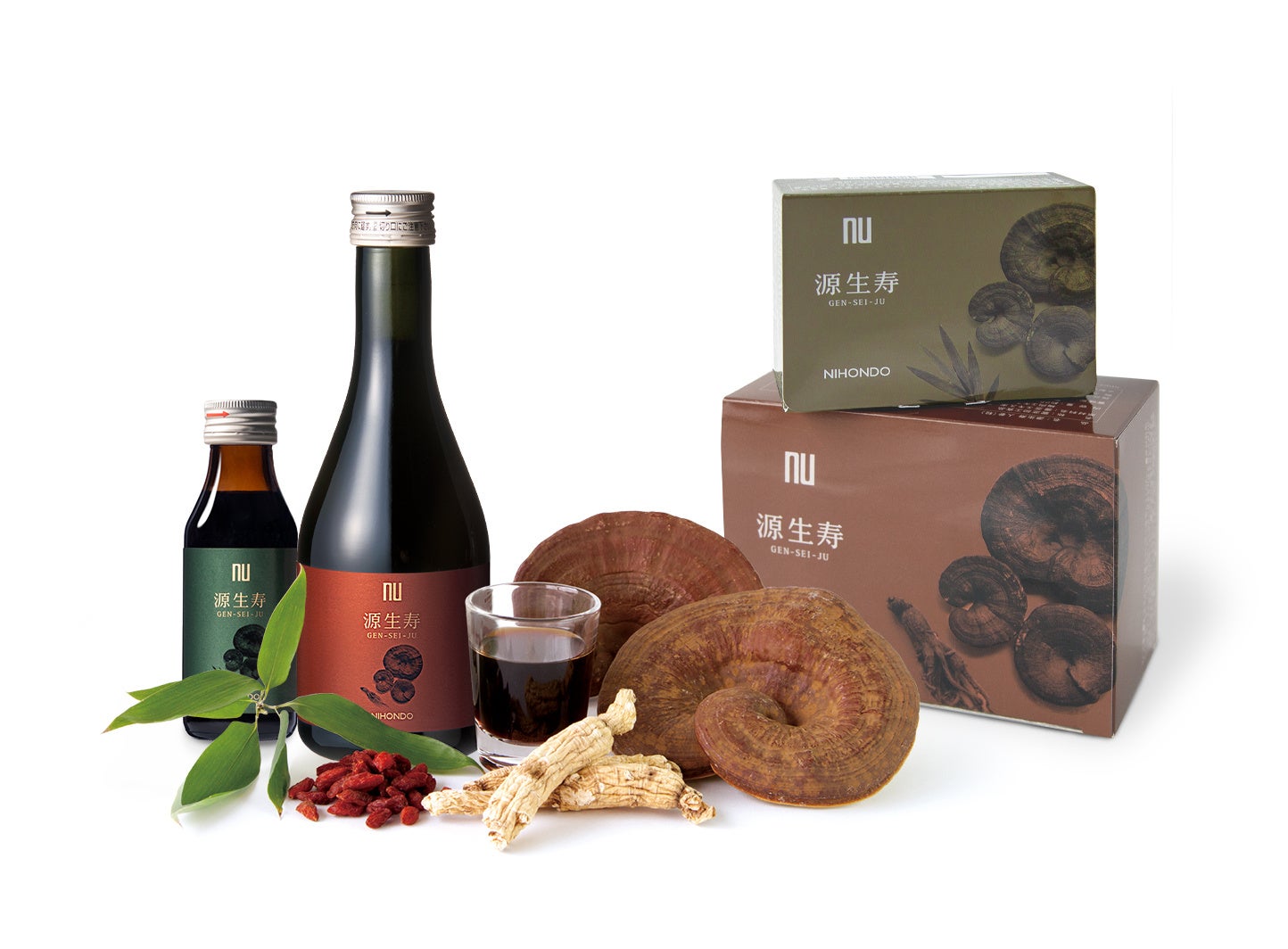 1969年に創業した薬日本堂は、漢方相談を通じて日々お客様のお悩みを伺う中で、「毎日続けられる身体によいもので、根本からケアする」ことが大切であると考えました。そこで、これまでの知見を活かして和漢素材を厳選し、1980年に「濃縮サルノコシカケ」を開発。翌年「源生寿」に名称変更し、販売をスタートしました。1994年にはクマ笹タイプが誕生し、多様なニーズに対応できる看板アイテムに成長。2026年で発売から45周年を迎えます。