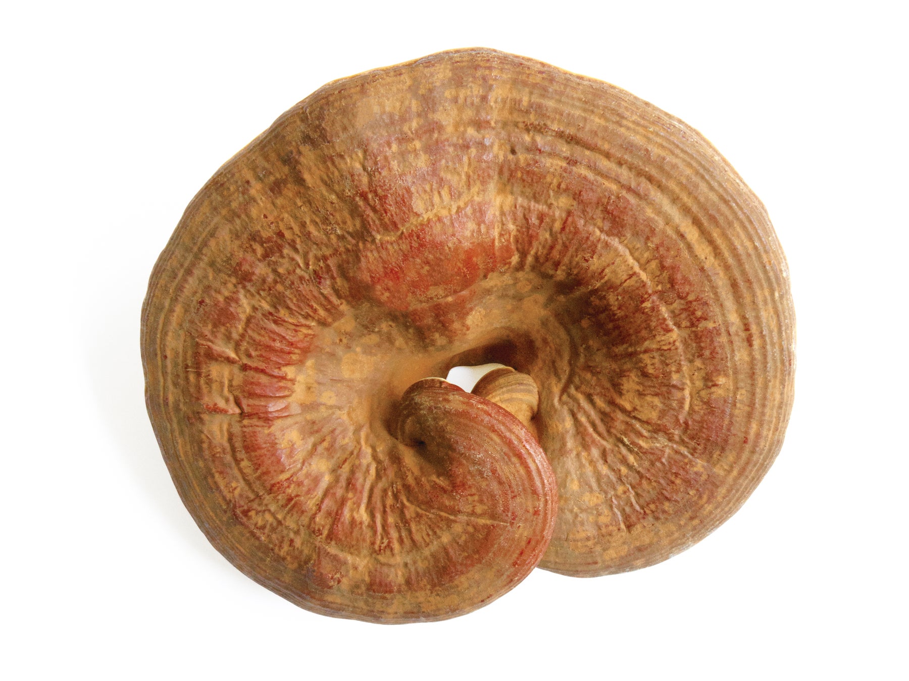 霊芝とは、別名「万年茸(まんねんたけ)」ともいわれるキノコの一種。10万本の古木に2~3本しか採取できないほど希少で、かつては宮廷や上流階級の一握りの人々に珍重されていました。1970年代には人工栽培が可能になったものの、今でも良質の霊芝の生産量はごく限られています。