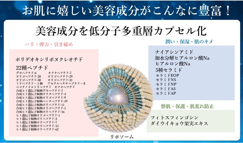 ポリデオキシリボヌクレオチド、22種のペプチドと5種セラミドがサポート。セカンドスキンクリームの“下”に塗ってひとばん過ごすことで肌のポテンシャルがこれでもか、と引き出されます。