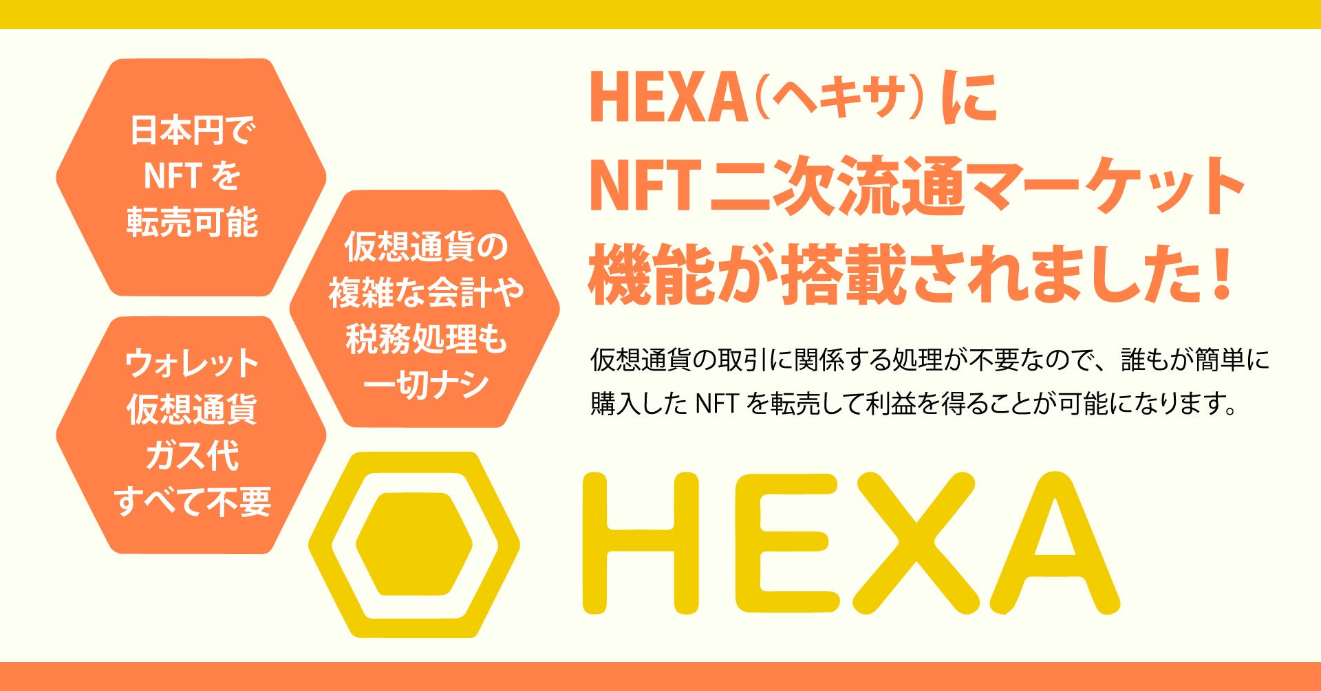 HEXA(ヘキサ)がガス代・仮想通貨不要で利用できる日本円ベースのNFT二次流通マーケット(セカンダリーマーケット)機能を搭載!