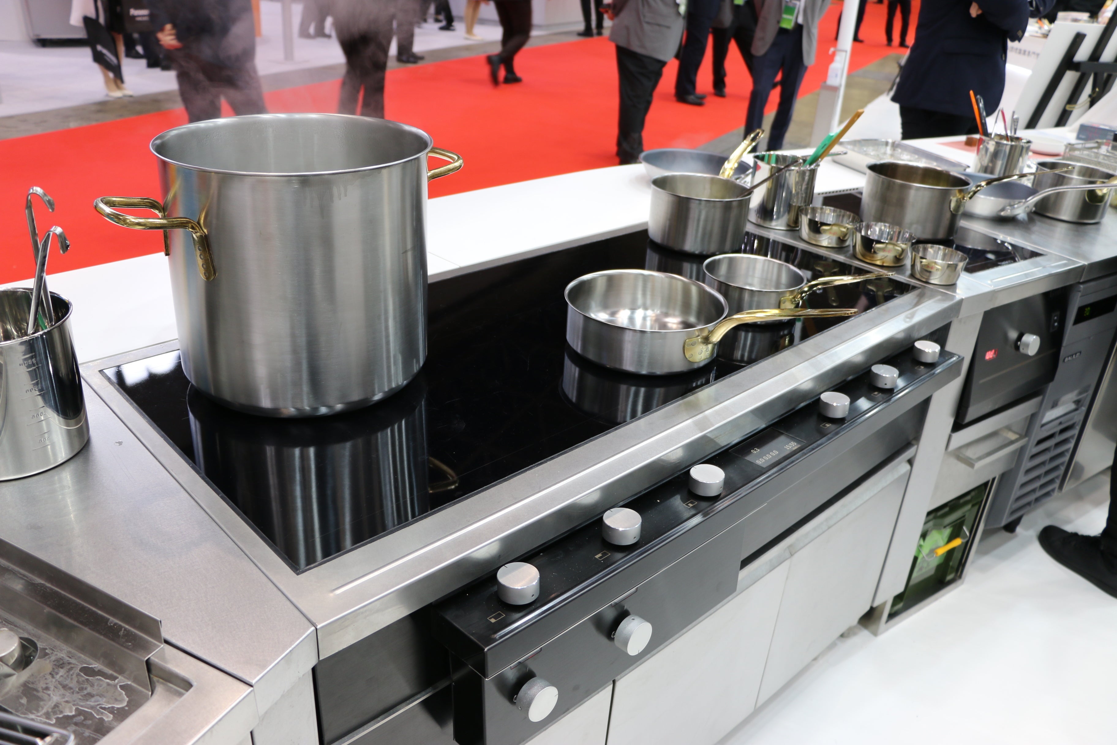 当社では、調理メニューや料理人、店舗コンセプトに合わせたオーダーメイド制作を承っております。実演では、ガス・電気・低周波IHの3種類の熱源を用意し、それぞれの特性を比較いたしました。