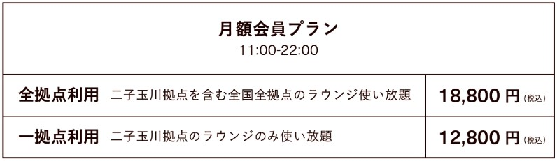 ・利用方法:「goodroom lounge 二子玉川」現地受付にてお申し出ください。