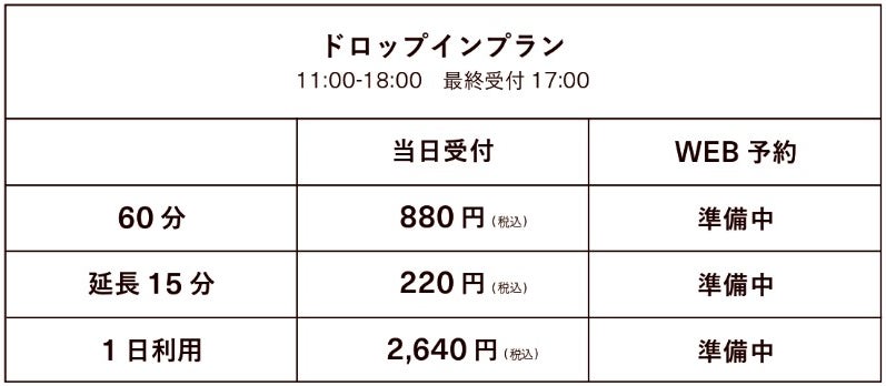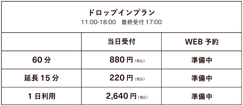 ※ドロップイン利用は11:00〜18:00