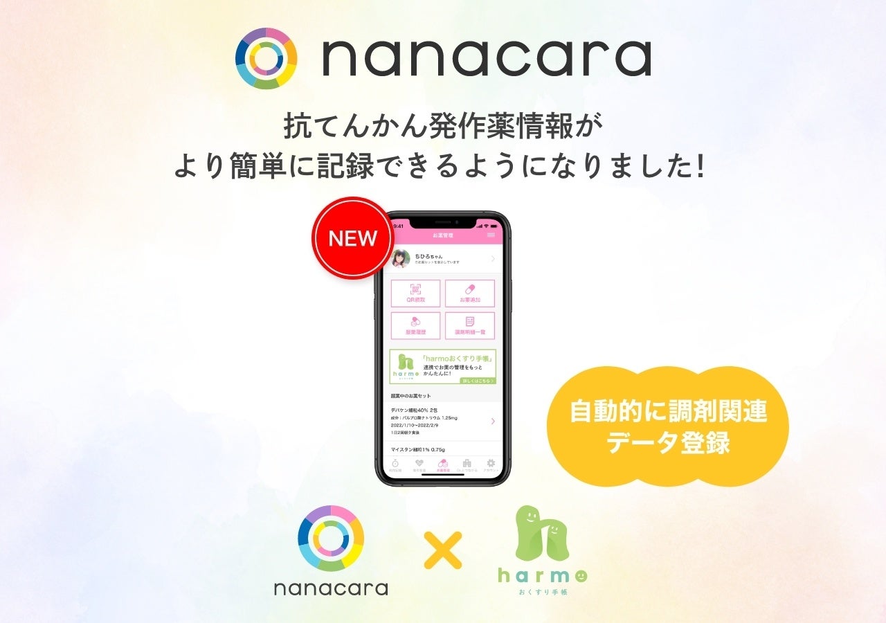 患者・ご家族と共に創る、てんかん診療の支援プラットフォーム「nanacara(ナナカラ)」を運営するノックオンザドア株式会社(本社:東京都港区、以下ノックオンザドア)は、harmo株式会社(本社:東京都港区、以下:harmo)の「harmo(ハルモ)おくすり手帳」と連携し、利用者の調剤関連データをより簡単にアプリ上で記録できるようになりました。nanacaraは今後も、てんかんを持つ方とご家族が輝き自分らしい暮らしを送れるよう、てんかん診療の向上、暮らしの向上に向けて、皆様と共に活動を広げてまいります。