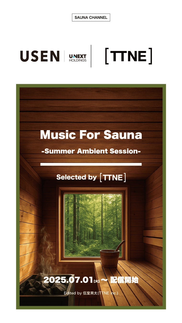 サウナクリエイティブ集団 TTNE株式会社(本社:東京都港区、代表取締役:松尾大)の伍堂英太は、2025年7月1日(火)、株式会社USENが提供する業務用音楽配信サービス「OTORAKU(オトラク)」内のサウナ専門チャンネルのプレイリストを更新しました。今回は「Summer Ambient Session」と題し、夏のサウナ体験に寄り添う50曲をセレクトしています。