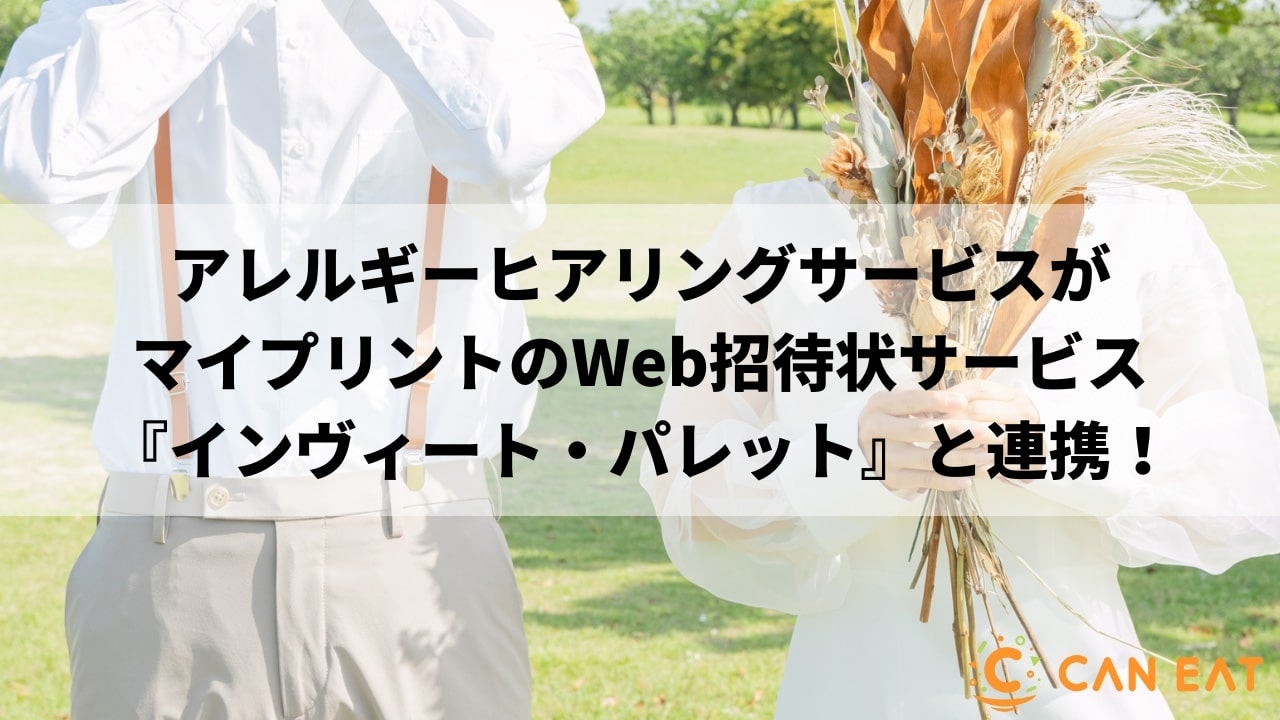 株式会社CAN EAT(本社:東京都新宿区、代表取締役社長:田ヶ原絵里、以下「CAN EAT」)が開発・運営する「アレルギーヒアリングシステム」は、マイプリント株式会社(所在地:東京都多摩市、代表取締役:木村 健一、以下「マイプリント」)が新たに開発したデザイン豊富なWeb招待状サービス『インヴィート・パレット』と連携しました。基幹システム『WPS』に加えてWeb招待状とも連携することにより、結婚式準備におけるコミュニケーションをますます円滑にし、新郎新婦やプランナーの負担を軽減します。
