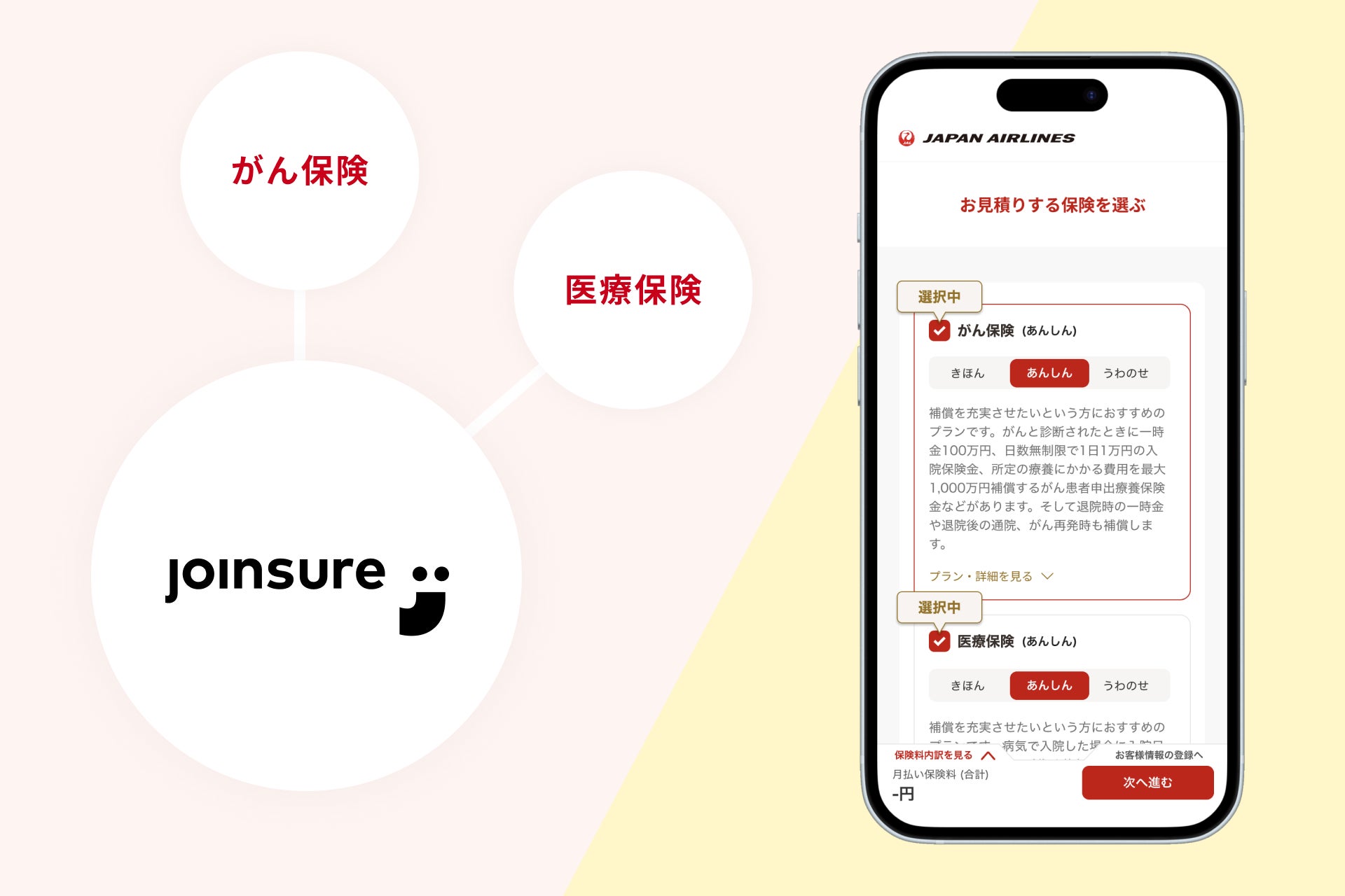 今回、マイルがたまる「JALの保険」に「医療保険」と「がん保険」を追加することとなり、当社の持つ保険マーケティングのノウハウや「joinsure」を評価いただき、ソリューションの導入に至りました。