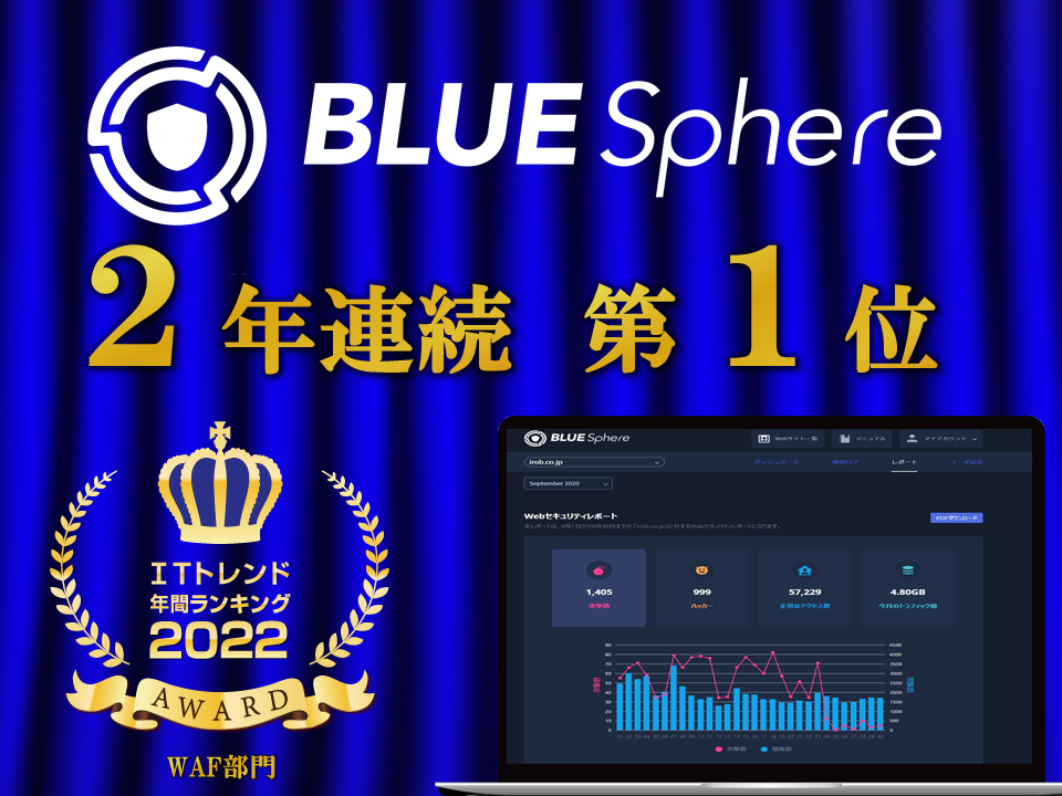 株式会社アイロバ(代表取締役:小林 直樹、以下「アイロバ」)の提供するBLUE Sphere(ブルー スフィア)は株式会社Innovation & Co. (本社:東京都渋谷区、代表取締役社長:遠藤俊一)が運営する比較サイトITトレンドにて発表された、「ITトレンド年間ランキング2022」においてWAF部門2年連続で第1位になりましたのでお知らせいたします。