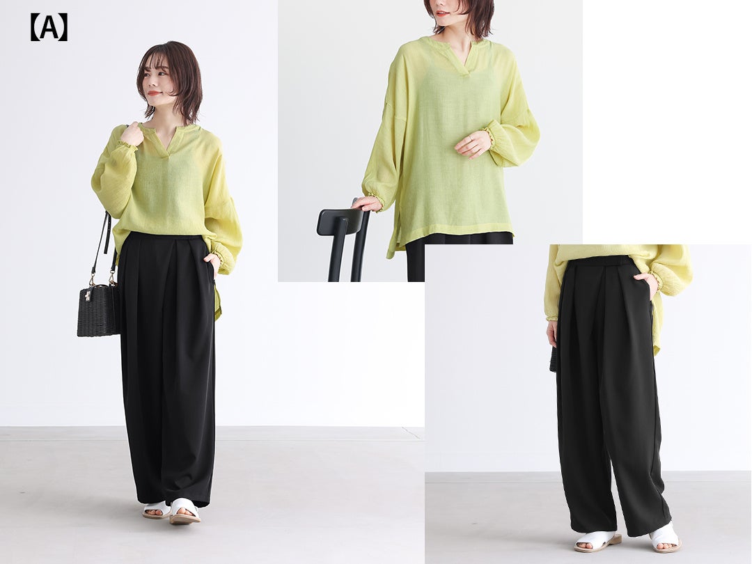 【A】国際女性デーを象徴とする、春らしさ溢れるミモザカラーのブラウス×ストレートパンツ
