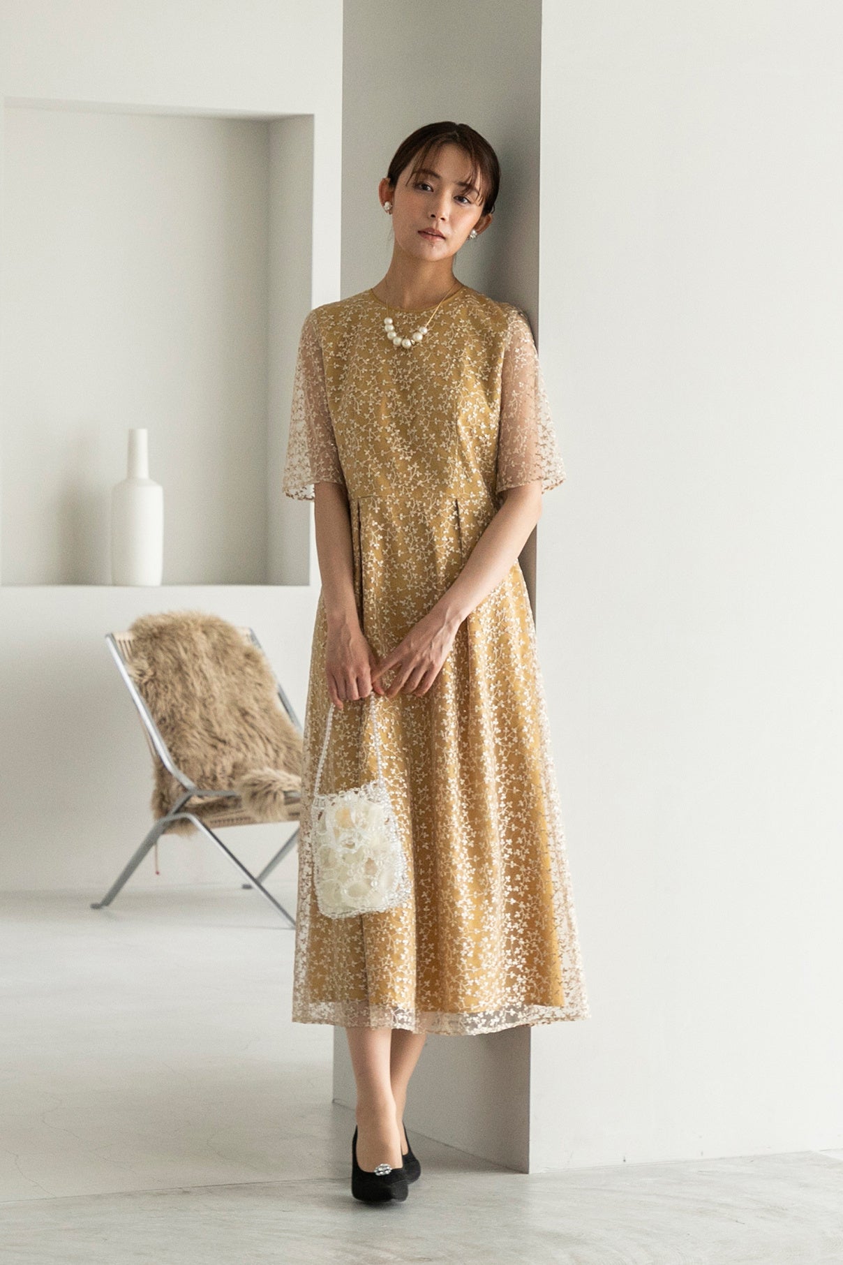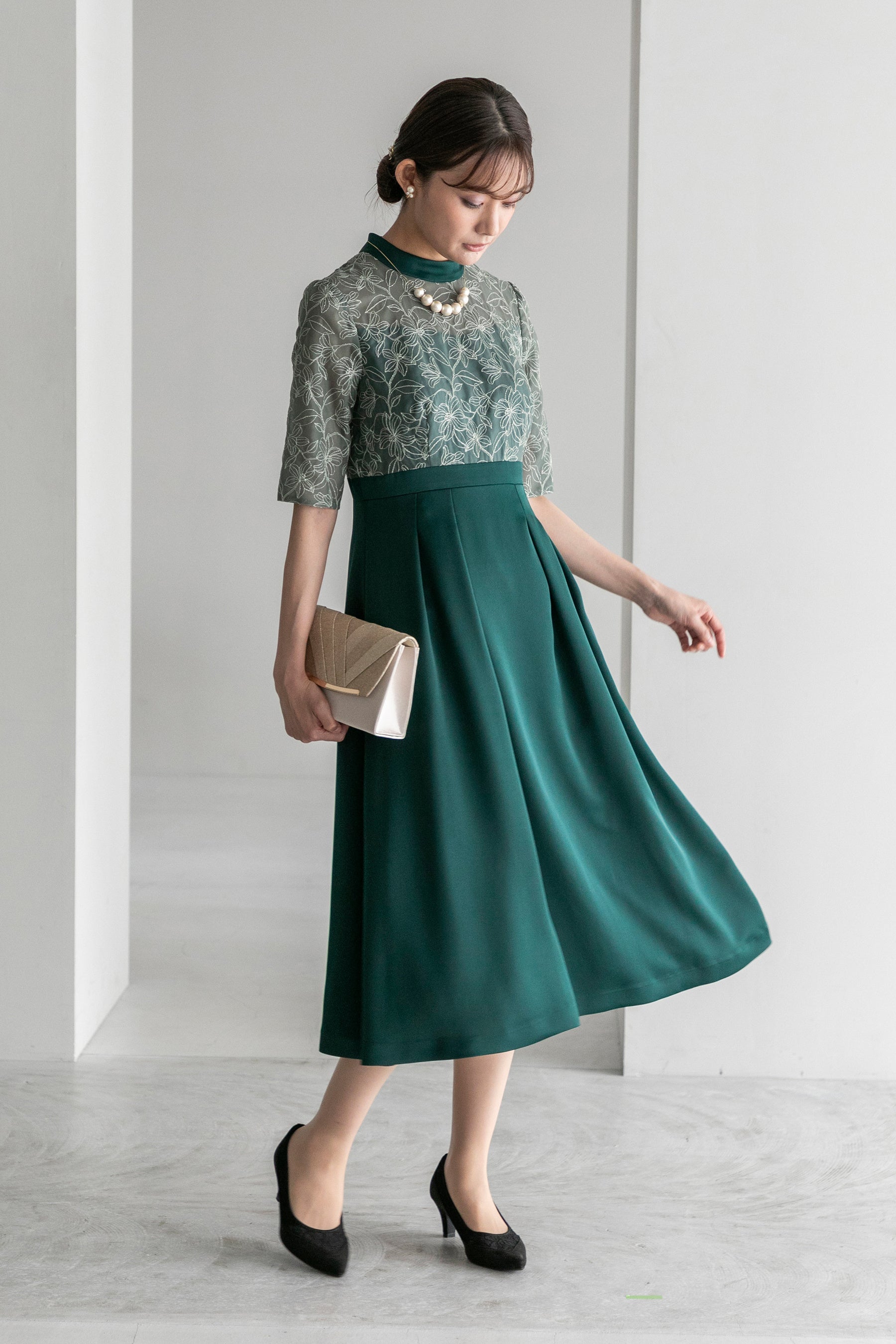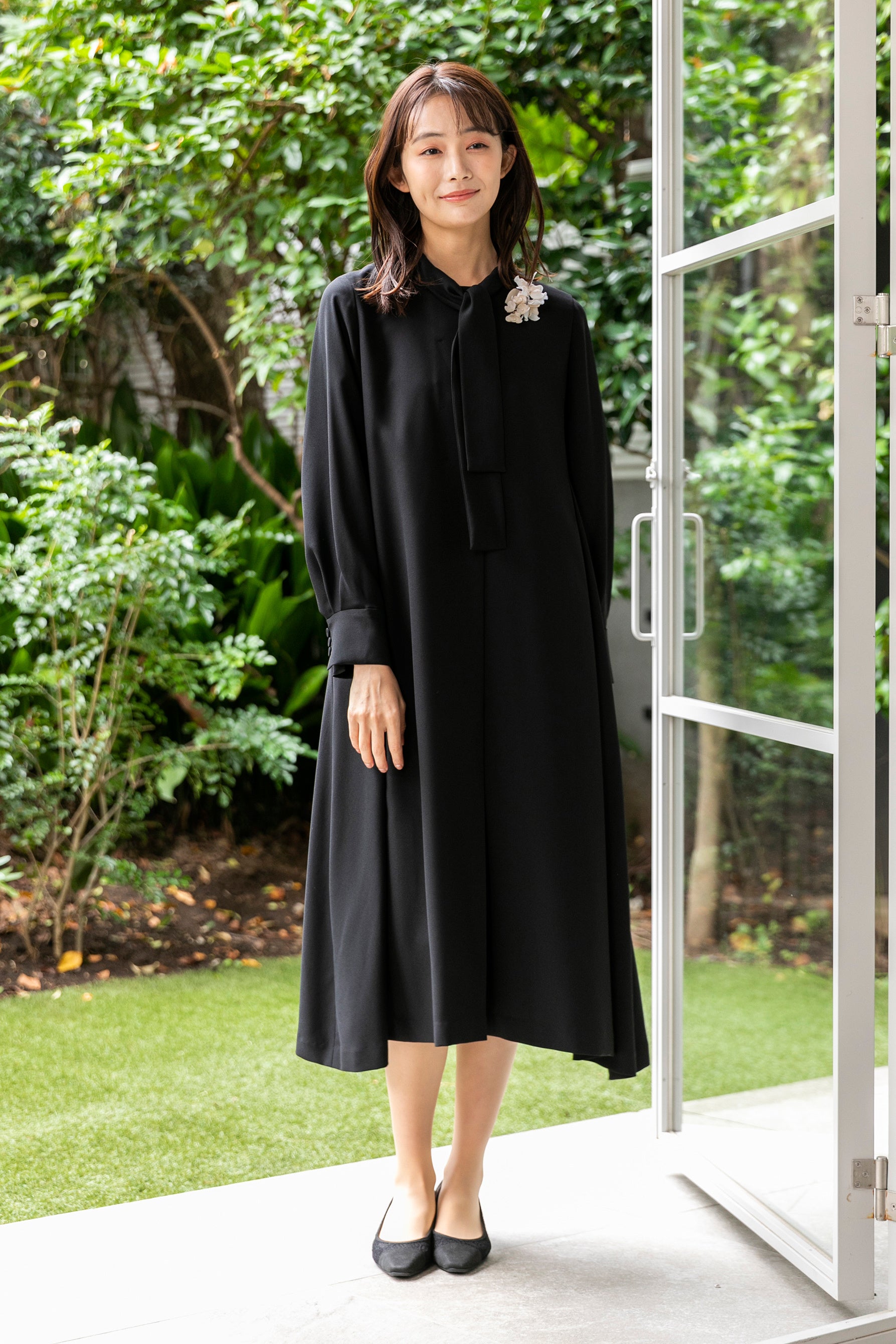 世間の流れを踏まえて、ジャケットなしでほどよくフォーマルに決まるワンピーススタイルを提案。