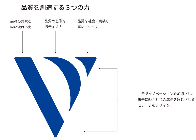 納品物の検収(=ベリファイ)のチェックマークから、イノベーションの加速を示すシンボルマークへの刷新を行いました。新しいシンボルマークは、品質を創造する3つの力から構成され、その力でイノベーションを加速させていく意志を視覚的に表現したものです。ロゴタイプもスマートデバイスでの表示やあらゆる人からの視認性を思慮し、より可読性の高いデザインに改定しました。さらに規定したパーパスに込めた想いを端的なフレーズにしたタグライン「加速しよう、未来を。」を開発し、今後は企業コミュニケーションのキーワードとして活用していきます。