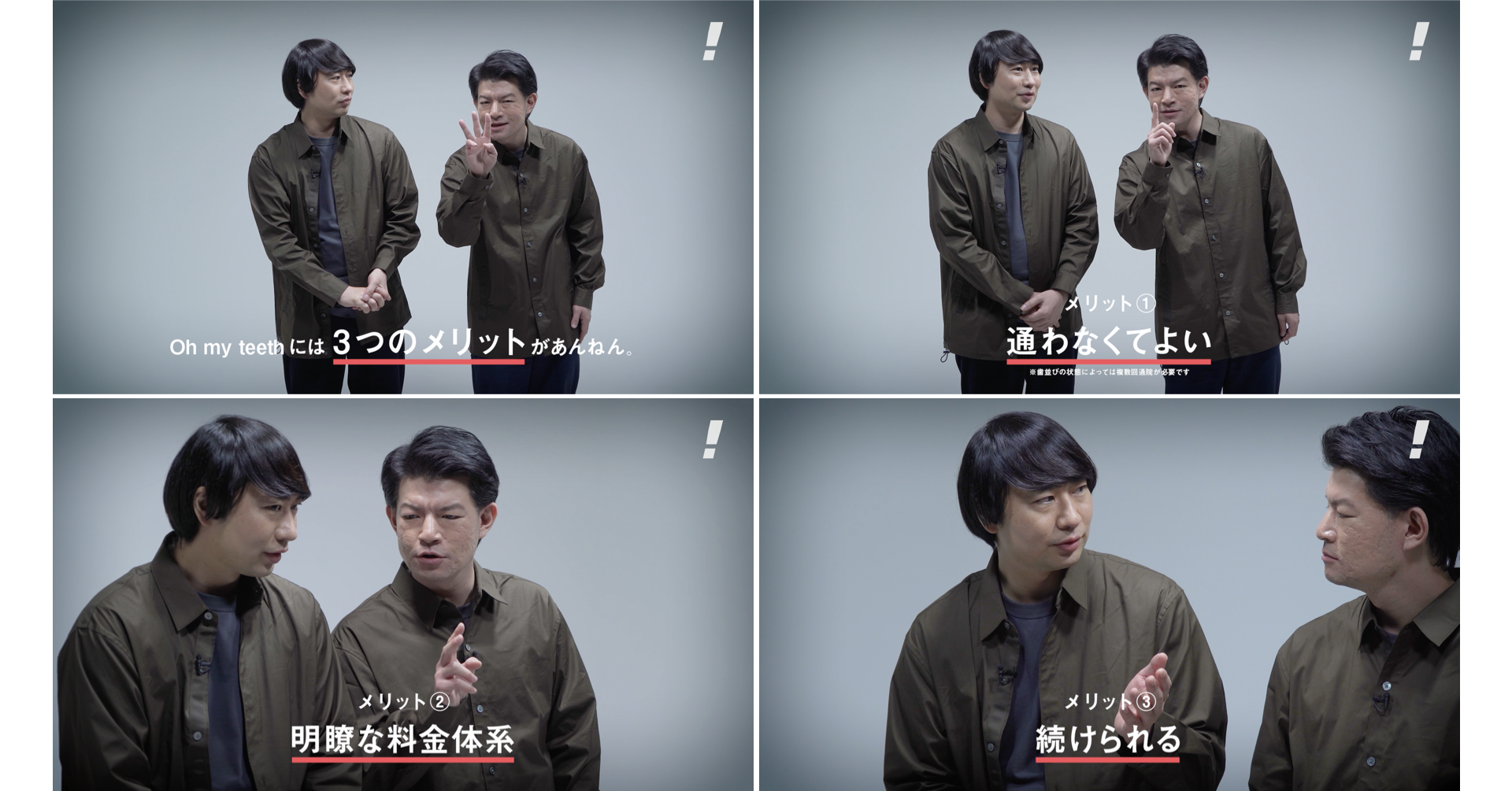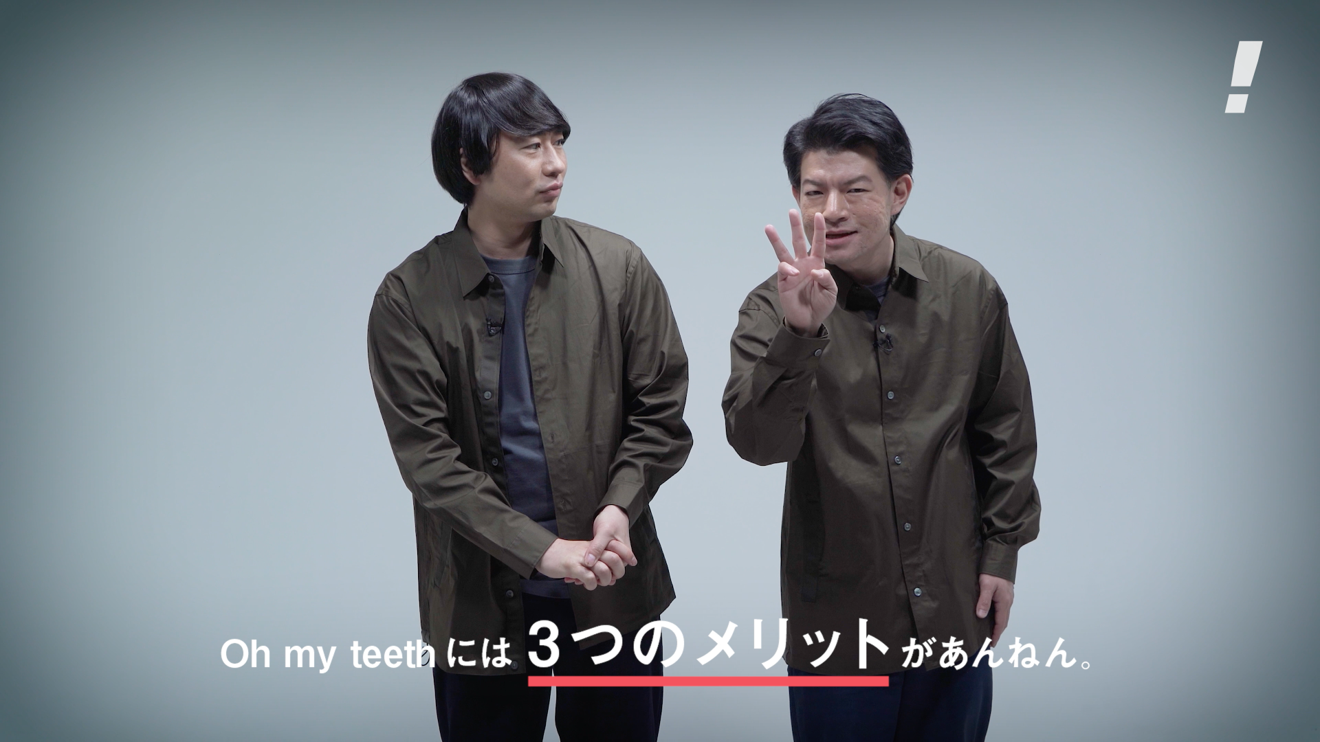新社会人をはじめ、忙しいビジネスパーソンから支持を得ている「Oh my teethの3つのメリット」を、二人のテンポ感のある掛け合いで紹介します。