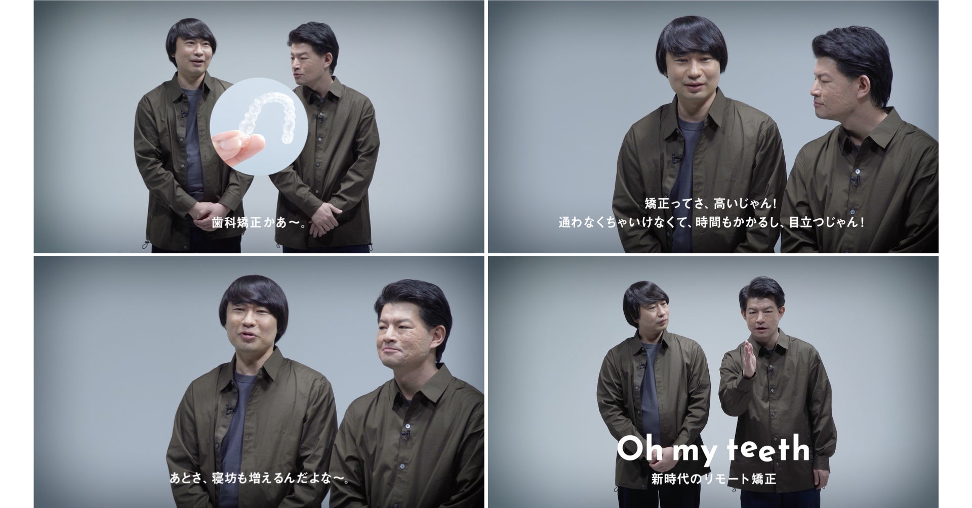 タイタン所属のお笑いコンビ「ネコニスズ」が、この春新社会人になった若者のトレンドとして歯科矯正を紹介。「高い」「通うのが面倒」といった従来の歯科矯正のイメージを覆す、新時代のリモート矯正「Oh my teeth」の特徴を漫才スタイルで紹介しています。