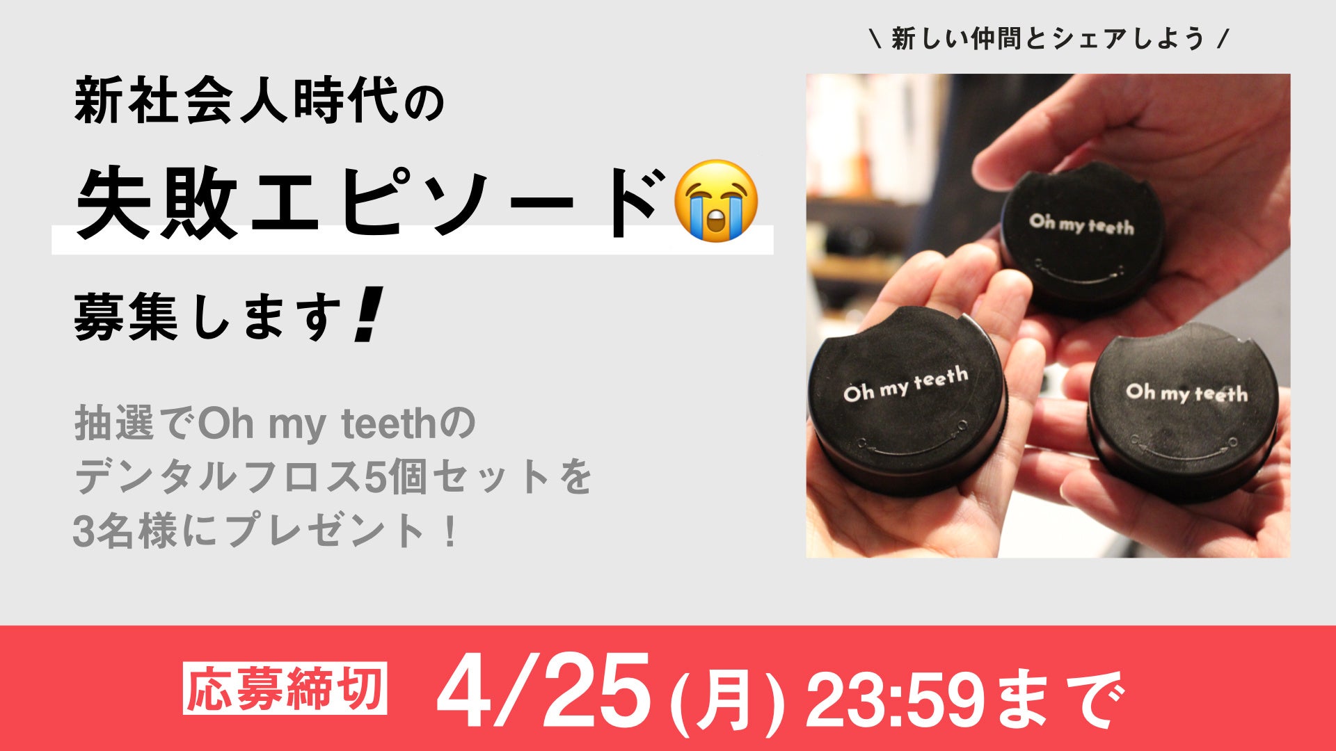 忙しい毎日を送る新社会人にお口から整ってもらいたいという願いを込め、Oh my teeth Home「デンタルフロス」をプレゼントするキャンペーンを実施します。