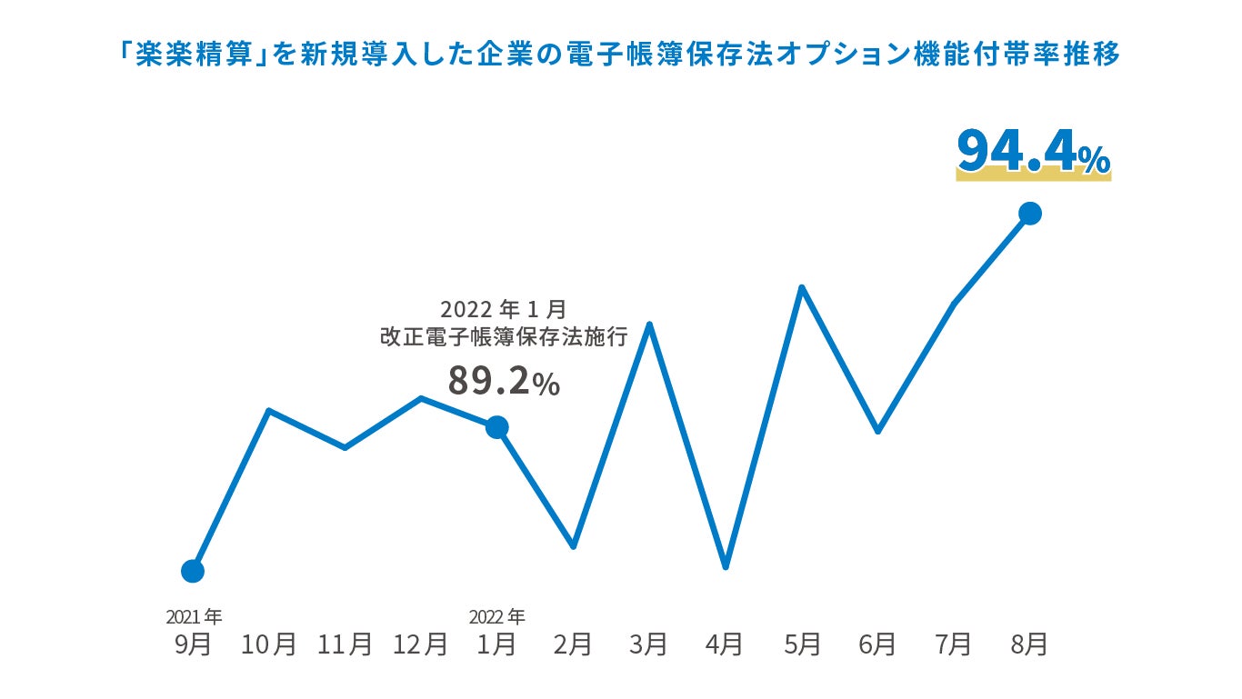 - 2023年10月開始のインボイス制度への対応も重なり、電子取引データの保存への対応準備は急務。電子帳簿保存法対応社数NO.1*の「楽楽精算」を導入する企業の対応率は増加傾向。