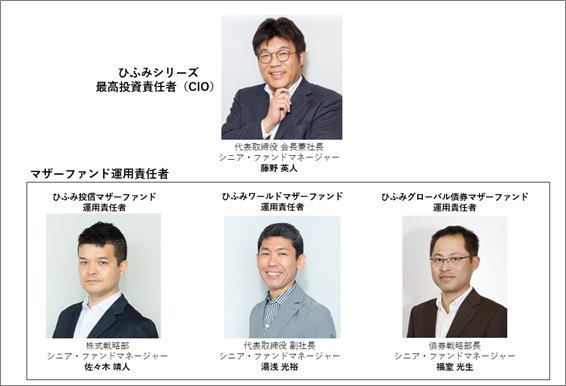 当社は2008年10月のひふみ投信の立ち上げ以来、ひふみ投信マザーファンドを中心とした投資信託(ひふみ投信、ひふみプラス、ひふみ年金)を展開してまいりました。その後、2019年10月には海外の成長株に投資するひふみワールドマザーファンドを、2021年3月には国内外の債券に投資するひふみグローバル債券マザーファンドを立ち上げ、それぞれのマザーファンドに分散投資を行なうまるごとひふみ、ひふみらいとの運用を開始しました。今後、それぞれのマザーファンドにおいて運用のプロフェッショナルが責任をもって運用するとともに、藤野 英人は、「ひふみ」シリーズの最高投資責任者(CIO)として、当社が展開する全商品の運用方針を決定し、全てのファンドの運用にコミットすることで、お客様の長期的な資産形成を応援してまいります。