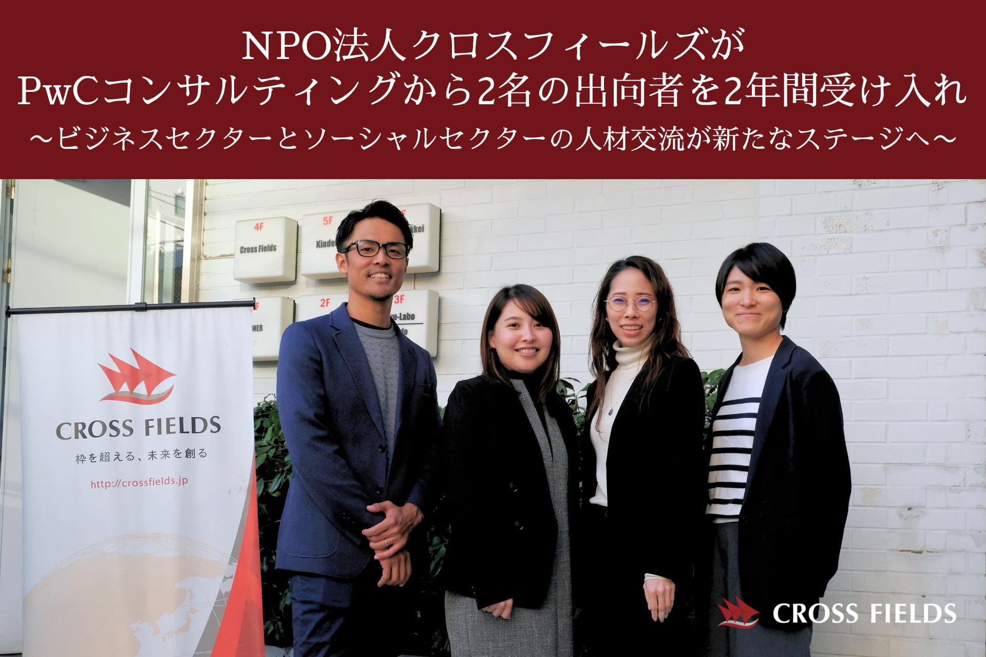 NPO法人クロスフィールズ(東京都品川区、代表:小沼大地、以下「クロスフィールズ」)は、2024年8月よりPwCコンサルティング合同会社(東京都千代田区、代表執行役CEO:安井正樹、以下、「PwCコンサルティング」)から社員2名の出向受け入れを開始しました。