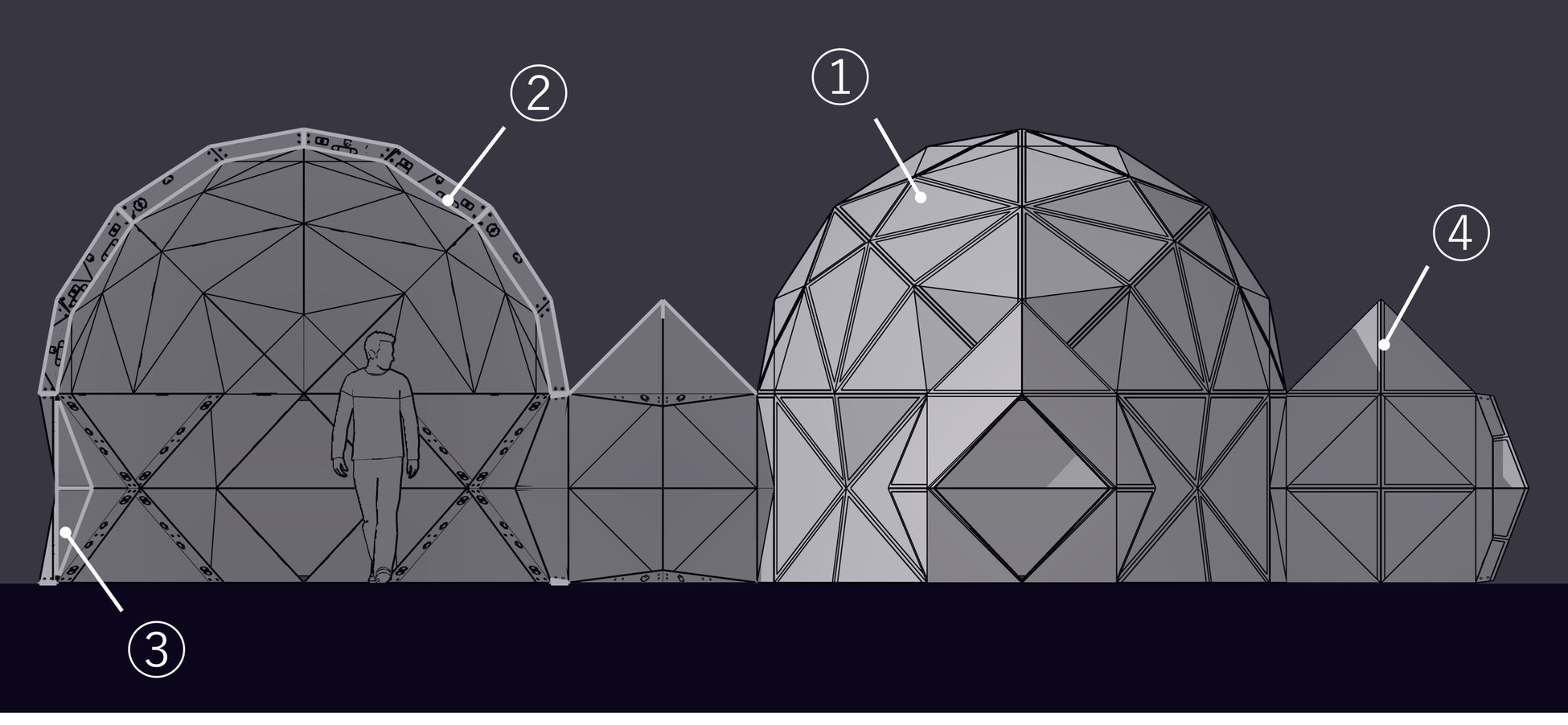 このような背景から、フィールドアシスタントが東洋製罐グループのサポートを受けて開発した組立式ダンボール製テント『DAN DAN DOME』をコアモジュールとして、宇宙開発向け生活環境検証ユニット『DAN DAN DOME EXP. STATION』が新たに誕生いたしました。EXP.とは、「EXPEDITION(探検)」、「EXPERIMENT (実験)」、「EXPERIENCE(経験)」を意味しており、失敗をなくす/失敗を洗い出す/失敗にふれるといった目的に対して、トライ&エラーを実行できる場となってほしいという思いから名付けられました。