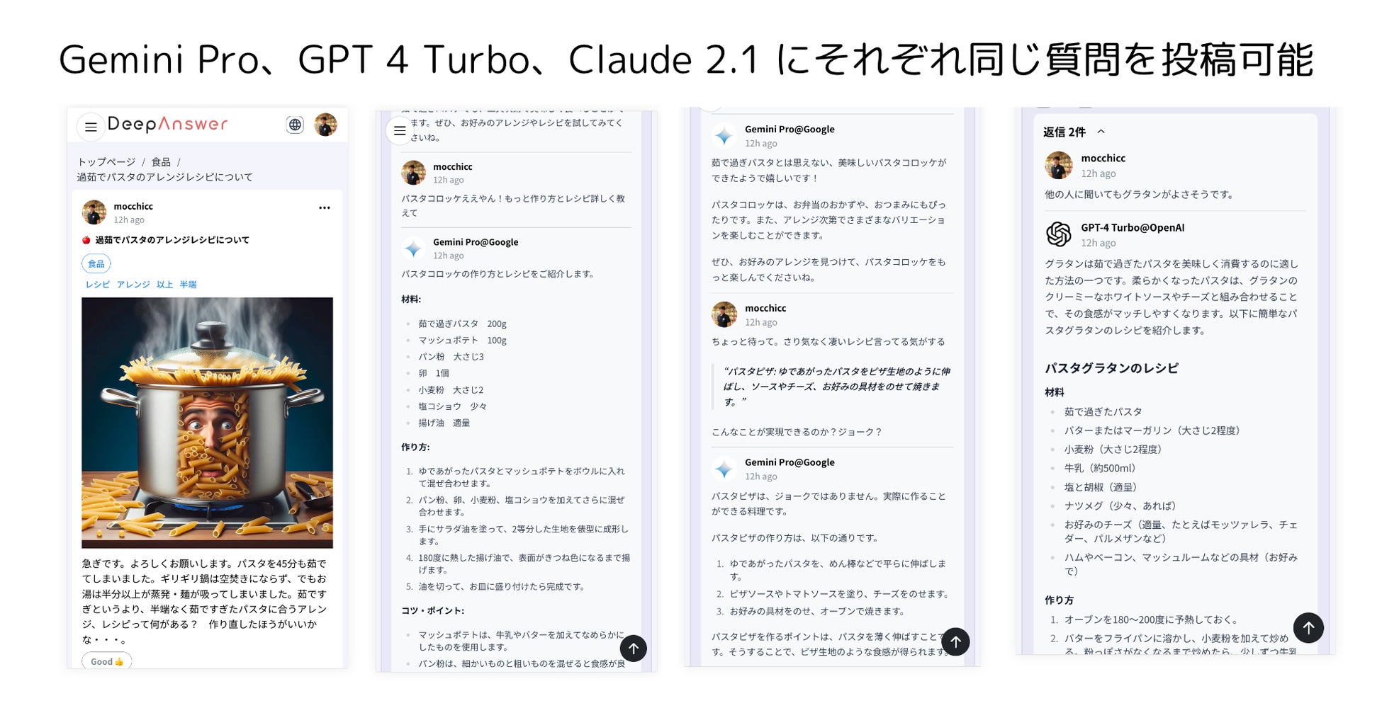 Gemini Pro、GPT4-Turbo など複数の対話AIモデルに「同時に」質問・分析できる、日本発サービス「DeepAnswer」が無料公開。