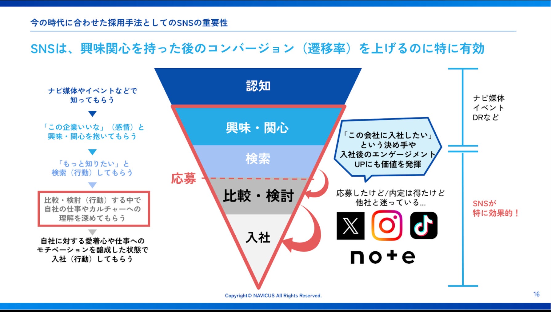 SNS活用は、求職者の「応募〜入社」までのコンバージョン(遷移率)を高めるための有効な手段