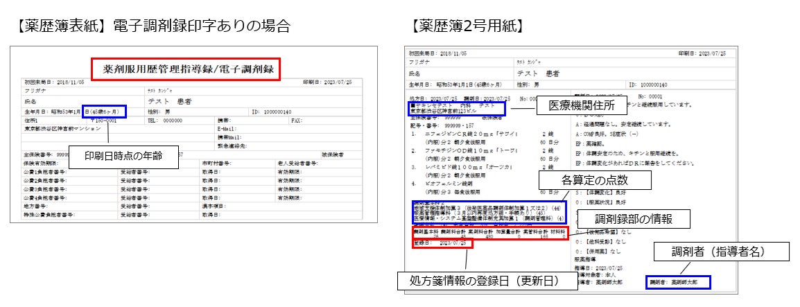 2.薬歴管理簿印刷機能に、電子調剤録対応の項目を追加