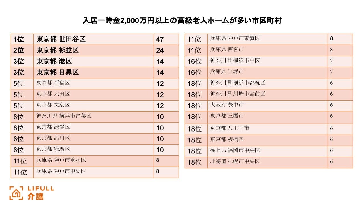 高級老人ホームの多い市区町村ランキング【LIFULL 介護(らいふるかいご)】