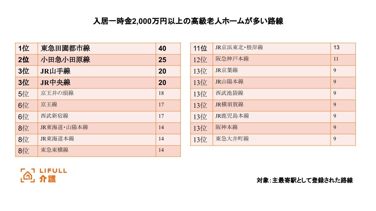 高級老人ホームが多い路線は東急田園都市線、JR鹿児島本線も上位にランクイン