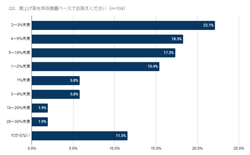 賃上げ率は「2〜3%未満」が最多