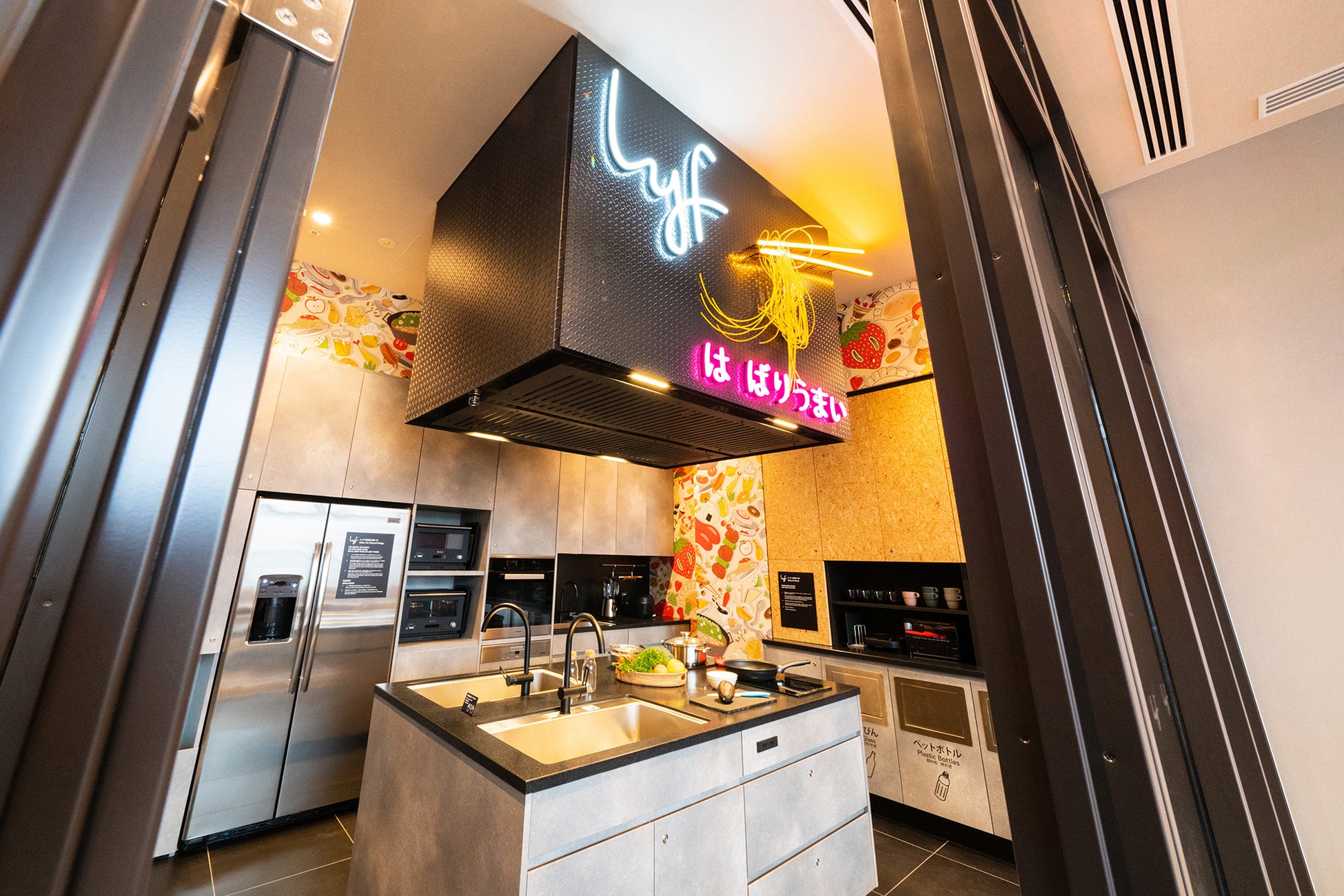 シンガポールや福岡を拠点とするデザイナーによるインテリアデザインとグラフィックが特徴的な施設内は、開放的なコワーキングスペースや設備の整ったソーシャルキッチンなどの充実したシェアスペースと、スタイリッシュで機能的なプライベート空間で構成されています。また、定期的に開催されるソーシャルプログラムやイベントでは、ゲスト同士や地元とのつながりを作り、コミュニティの発展をめざします。2021年6月16日開業、全131室。