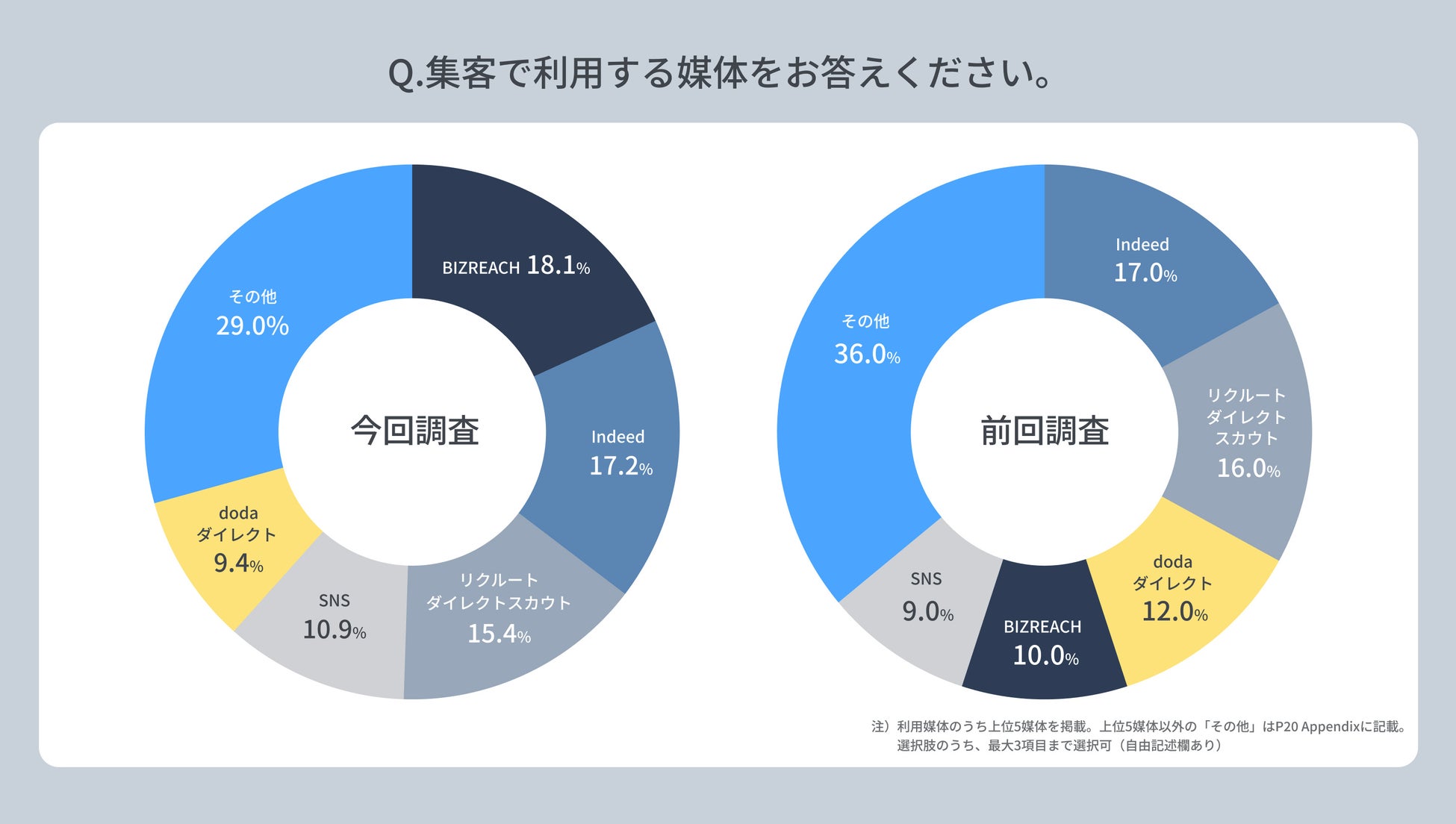 1.スカウト媒体で最も利用されているのはBIZREACH(18.1%)。前回調査+8.1ポイントと大幅な伸び。