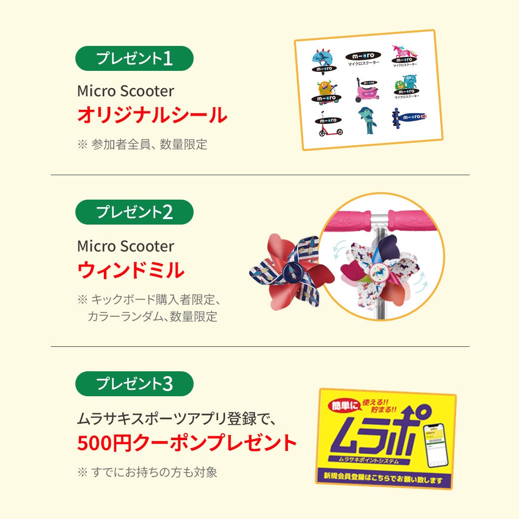 世界中の子供たちに人気のキックボードブランドマイクロスクーターは、クリスマスシーズンを迎え、ムラサキスポーツで「マイクロ試乗会」を開催すると発表しました。