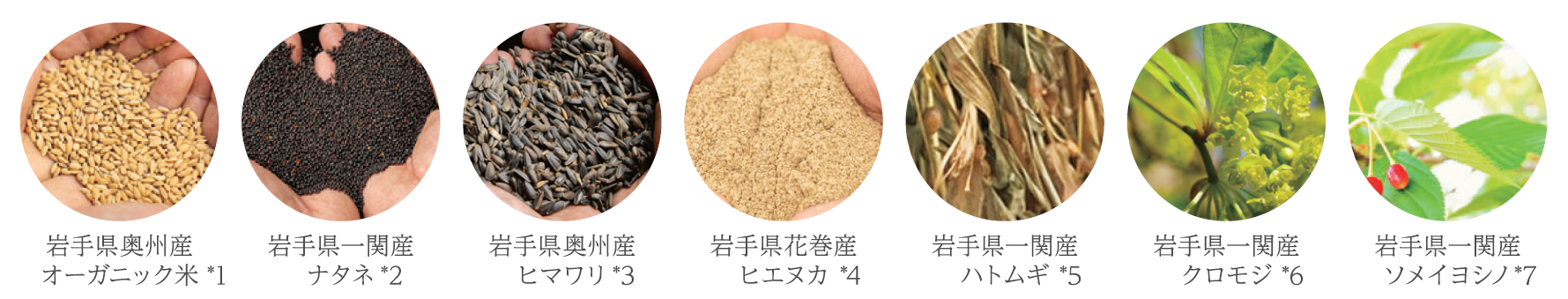 その他、菜種、クロモジ、ソメイヨシノなど、岩手に根付いた植物を採用しています。