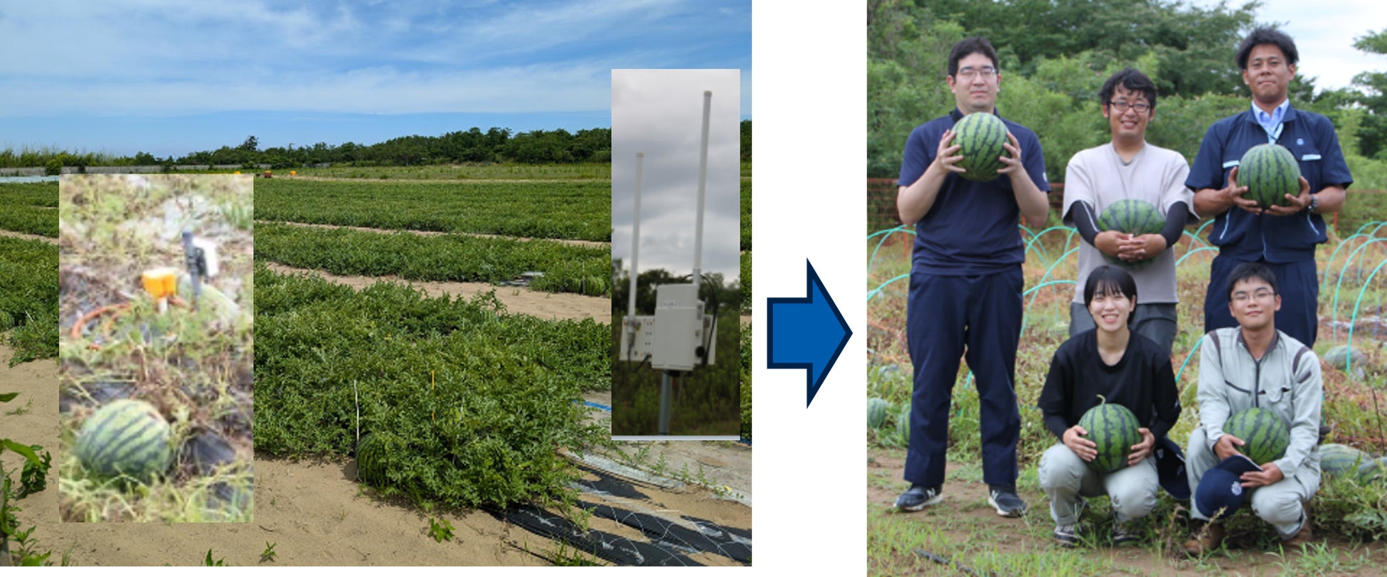 同社はまず石川県かほく市高松町の37アールの農地【写真2】を借り受け、令和7年より高級ブドウ、スイカ、サツマイモ等の生産を開始します。当該農地に隣接する35アールのグローバル電子高松実験農場【写真3】では、スマート農業用IoT機器(ハウス自動環境制御装置、地中水分濃度測定装置/自動潅水システム【写真4】等)を開発しており、同社ではこれらの機器を活用してスマート農業を展開することで、5年後には石川県内での栽培面積を5ヘクタールにまで拡大するとともに若年農業従事者の雇用を促進し、1億円の農産物を出荷する計画です。