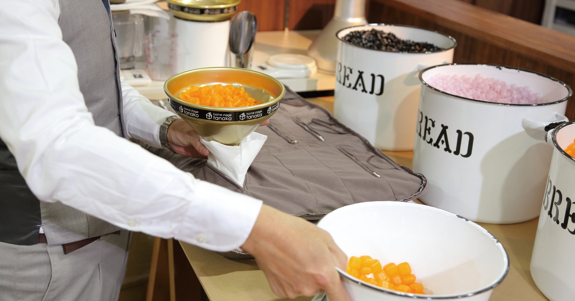 測定した情報をベースに、「じぶん好み」の8種類の中材を選び、調整して、その場で「じぶん」にあった最適な「じぶんまくら」をお作りさせて頂いています。