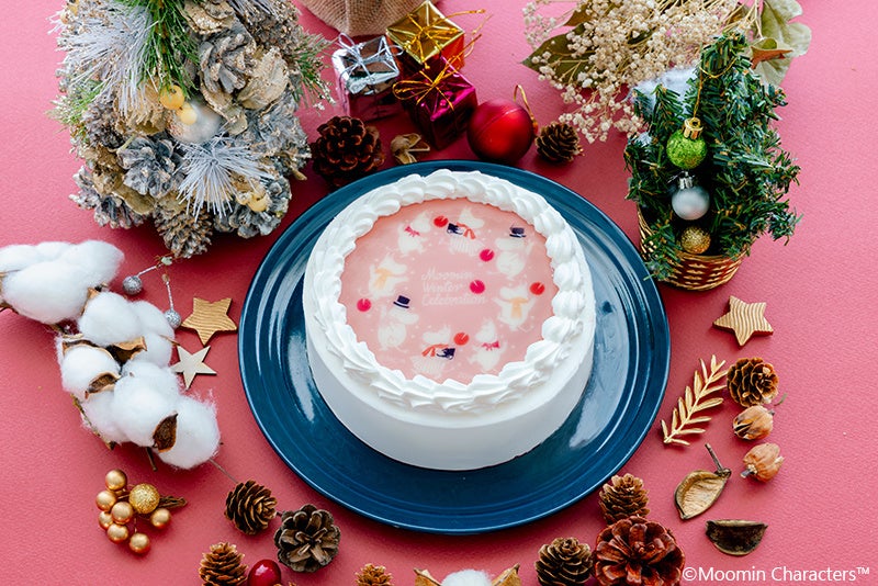 思い思いに初めての冬を楽しむムーミンたちが描かれた、いろどり鮮やかなクリスマスケーキ。3~5人で食べるのにちょうど良い5号サイズです。キメの細かいスポンジにくちどけの良いホイップクリームなど美味しさにもこだわっています。「ウィンターセレブレーション」缶バッジ付き。