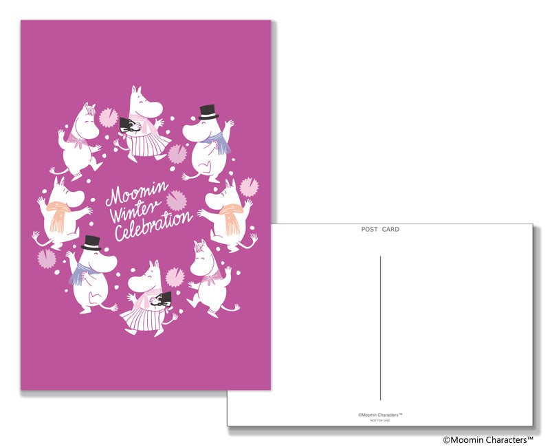 「ウィンターセレブレーション」のデザインを手がけたジェームス・ザンブラは「ムーミンたちが冬の屋外で季節の変化を楽しむ様子を表現したかった。」とコメントしています。彼は「ムーミン」の作者トーベ・ヤンソンの姪孫にあたり、幼い頃からトーベと一緒に過ごす機会が多くありました。このデザインには、「紫はトーベがムーミンのイラストでよく用いていた色なので大切にしたい。」というジェームスの思いも込められています。背景色を強くあざやかな紫にすることでコントラストを作り、キャラクターのアウトラインを線で描かずに表現していることが特徴の一つです。