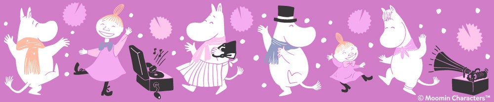 いつもは冬眠をするムーミンたちが、冬眠するどころか寒い外でスカーフを付け楽しく踊っています。「ウィンターセレブレーション」は、季節にあわせたシリーズの春・夏に続く第3弾で、冬のためのデザインです。