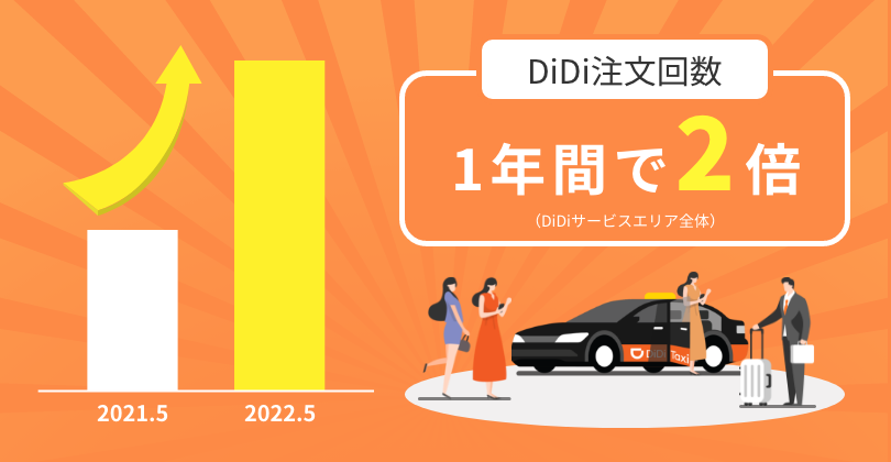 タクシーアプリ「DiDi」、2022年5月の注文回数が前年同月比2倍と大幅に増加