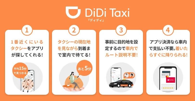 また、使いやすさという視点では、DiDiはタクシーアプリサービスの中で、「ユーザー評価No.1※2」という評価をいただいております。注文時に目的地を事前設定することで、タクシー車内でドライバーにルート説明不要になること、さらにアプリに登録したクレジットカードやPayPayをお支払い方法で選択することで、降車時に車内での支払いやり取りが不要になる「アプリ決済」機能といった、タクシー乗車体験をより便利にするためのプロダクト提供を重視していることが、お客様に評価いただけたと考えております。