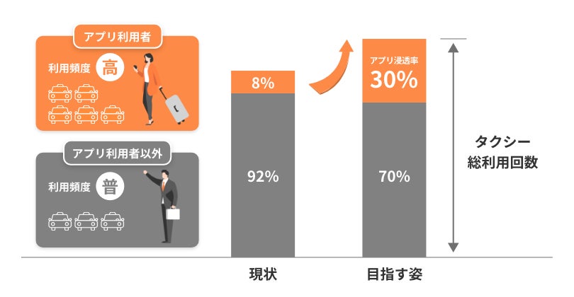 (タクシーアプリ浸透によるタクシー総利用回数増加のイメージ)