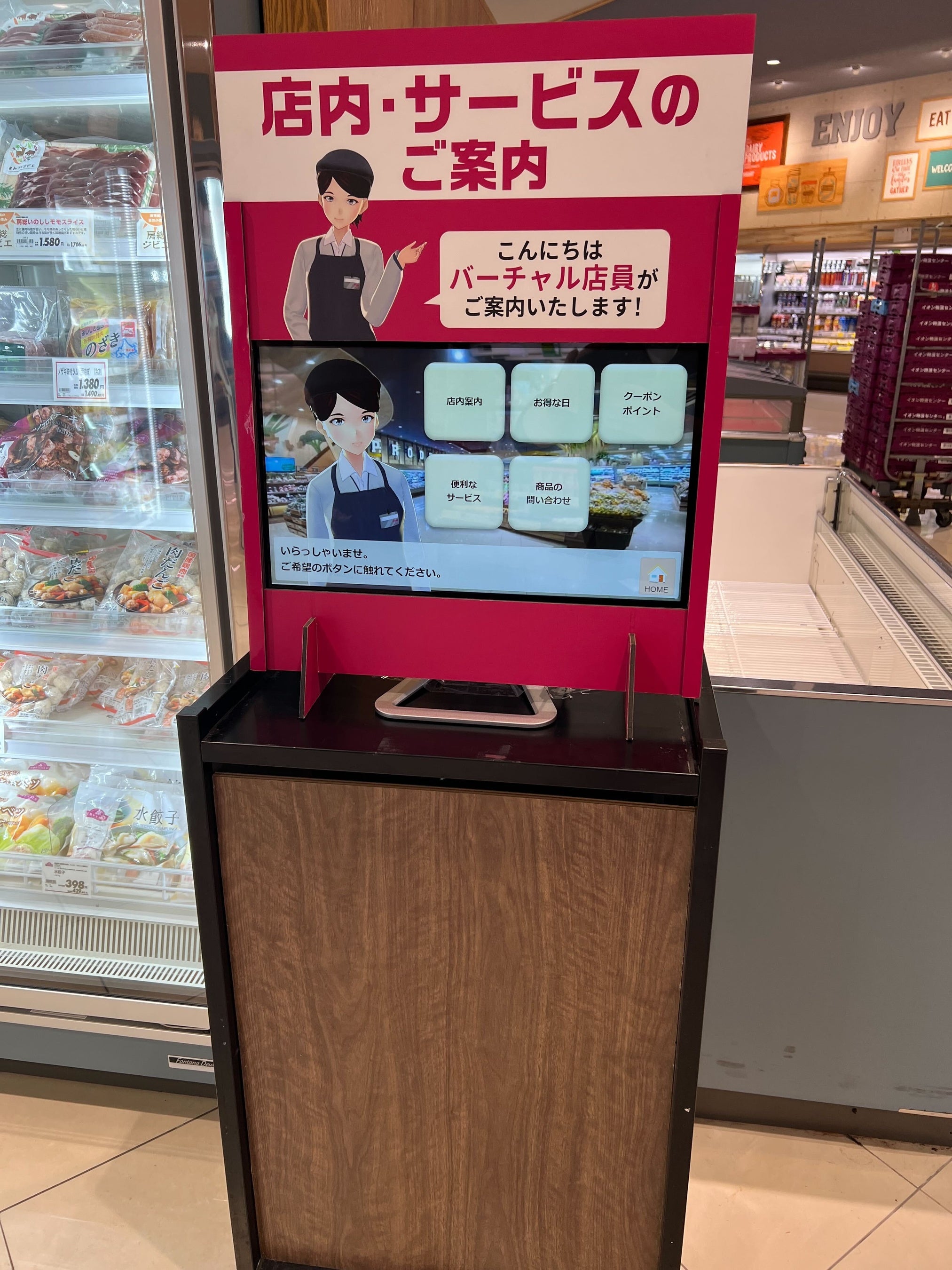 マックスバリュおゆみ野店で、株式会社kiwamiの手がけるアバター案内窓口と、デジタル生け簀が導入されました。
