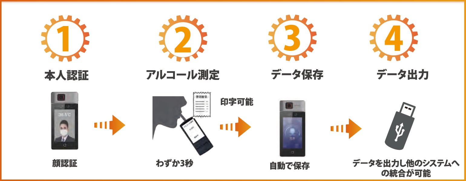 そこで、顔認証による入退室管理システムなどで実績のあるセキュアから、顔認証で運転者を特定し、同時に体表面温度とアルコールの測定をおこなう、顔認証アルコール検知ソリューション「SECURE アルコールチェッカー」を販売することとなりました。