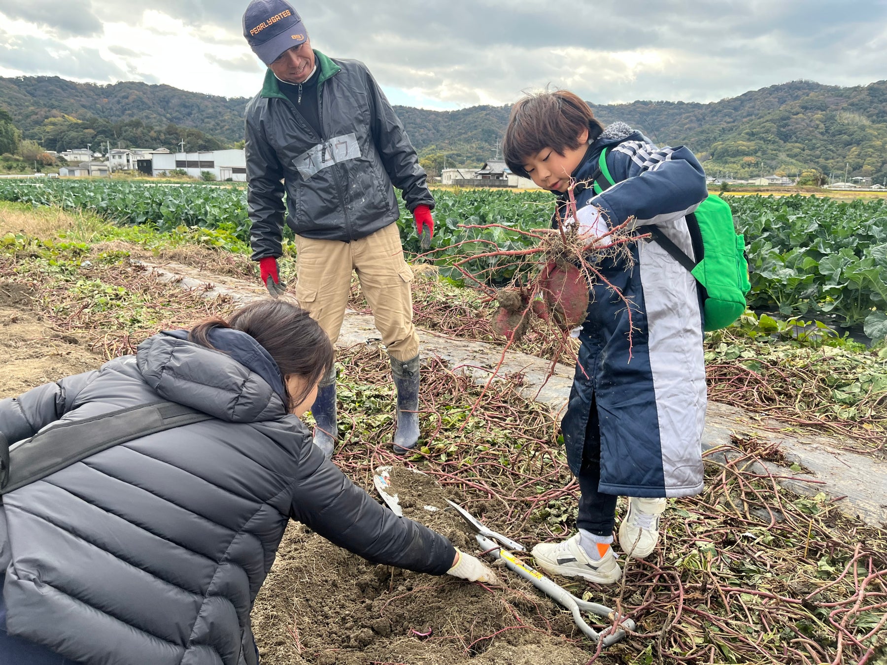 「さつまいも収穫がいちばん楽しかった!」「大きなスコップで力を入れて掘り起こしたら、あんなに大きなさつまいもが出てきてすごかった!」「クイズ全問正解したよ!」(子どもたち)